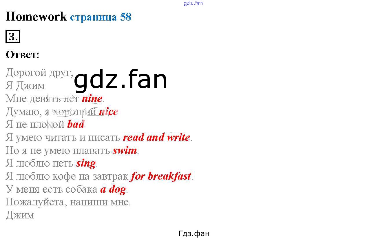 Проверка домашнего задания всегда занимает большое количество времени. На помощь приходит ГДЗ фан по Английскому языку третьего класса. Здесь собраны популярные ответы на 58 (№ 3, 4, 5, 6, 7) Английский язык 3 класс Биболетова