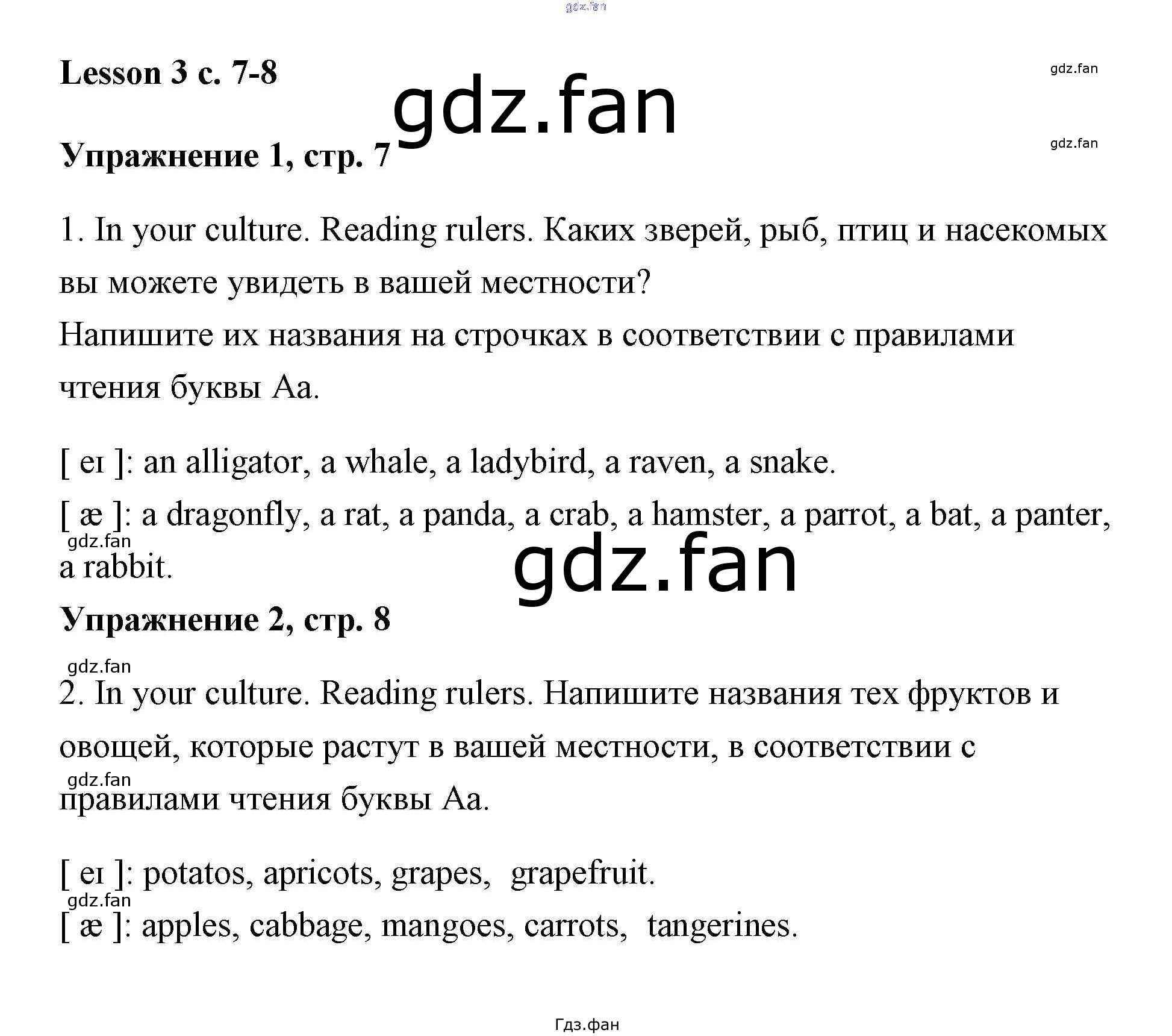 Проверка домашнего задания всегда занимает большое количество времени. На помощь приходит ГДЗ фан по Английскому языку третьего класса. Здесь собраны популярные ответы на 3 (стр. 7-8) Английский язык 3 класс Кузовлёв (рабочая тетрадь)