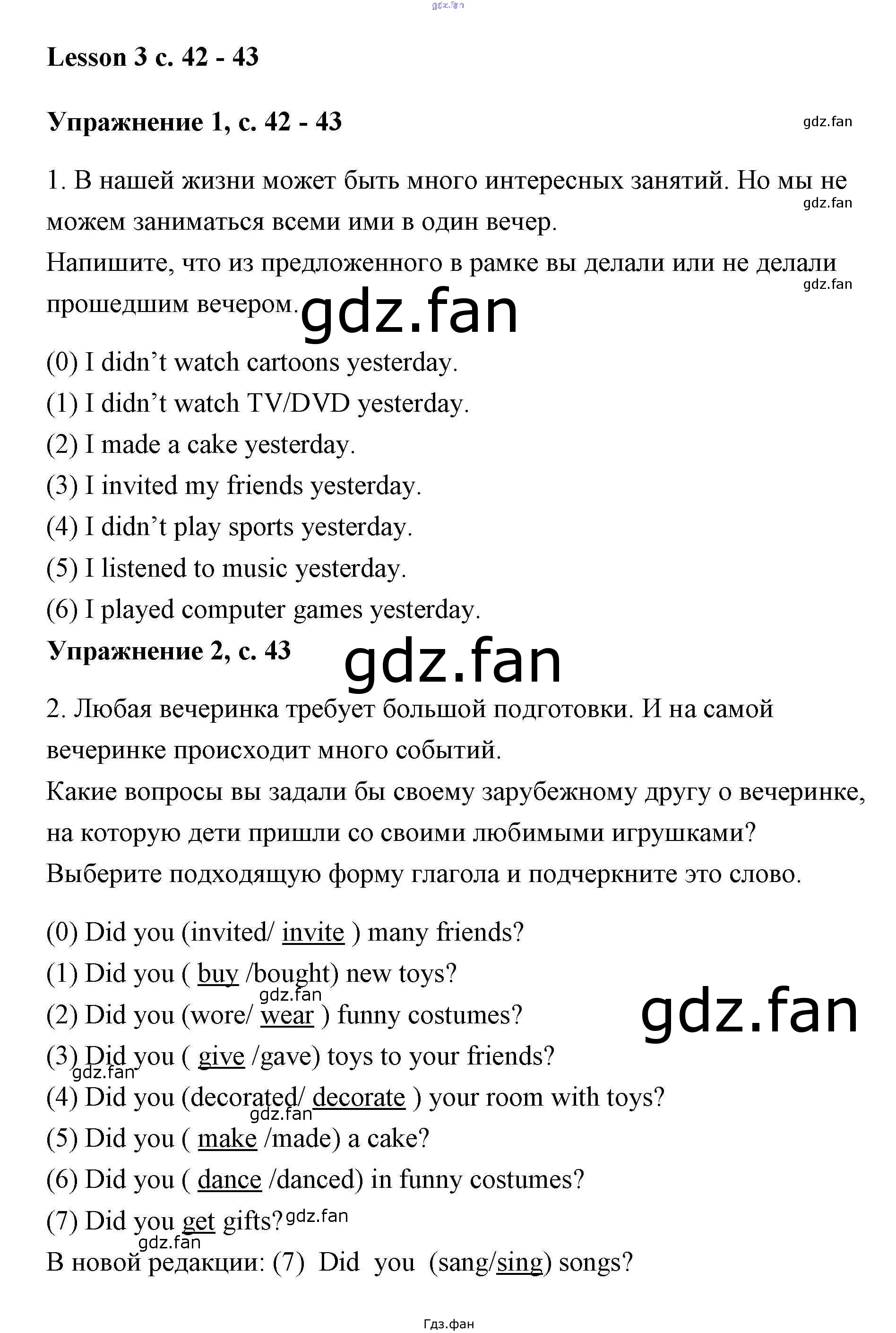 Проверка домашнего задания всегда занимает большое количество времени. На помощь приходит ГДЗ фан по Английскому языку третьего класса. Здесь собраны популярные ответы на 3 (стр. 42-43) Английский язык 3 класс Кузовлёв (рабочая тетрадь)