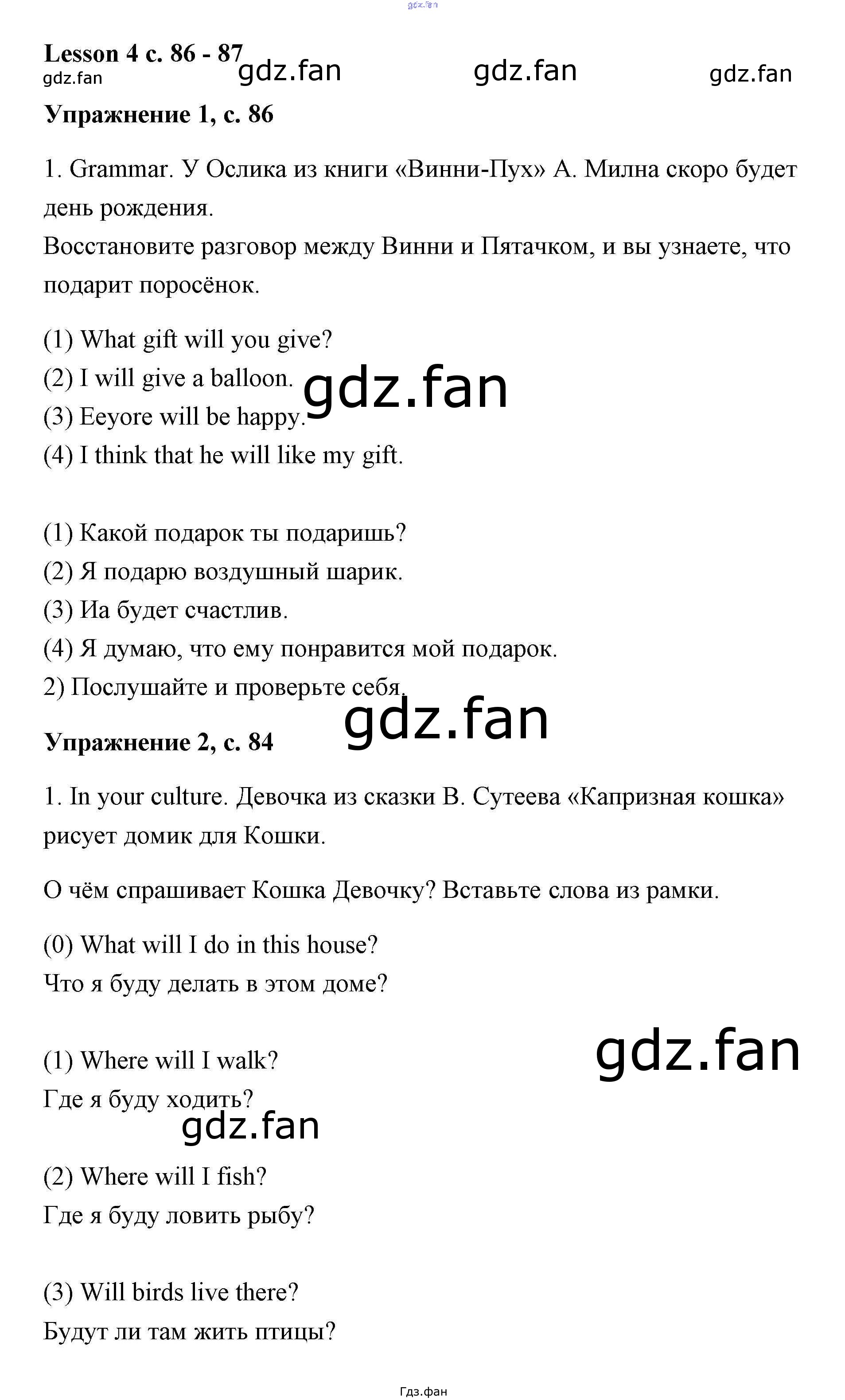 Проверка домашнего задания всегда занимает большое количество времени. На помощь приходит ГДЗ фан по Английскому языку третьего класса. Здесь собраны популярные ответы на 4 (стр. 86-87) Английский язык 3 класс Кузовлёв (рабочая тетрадь)