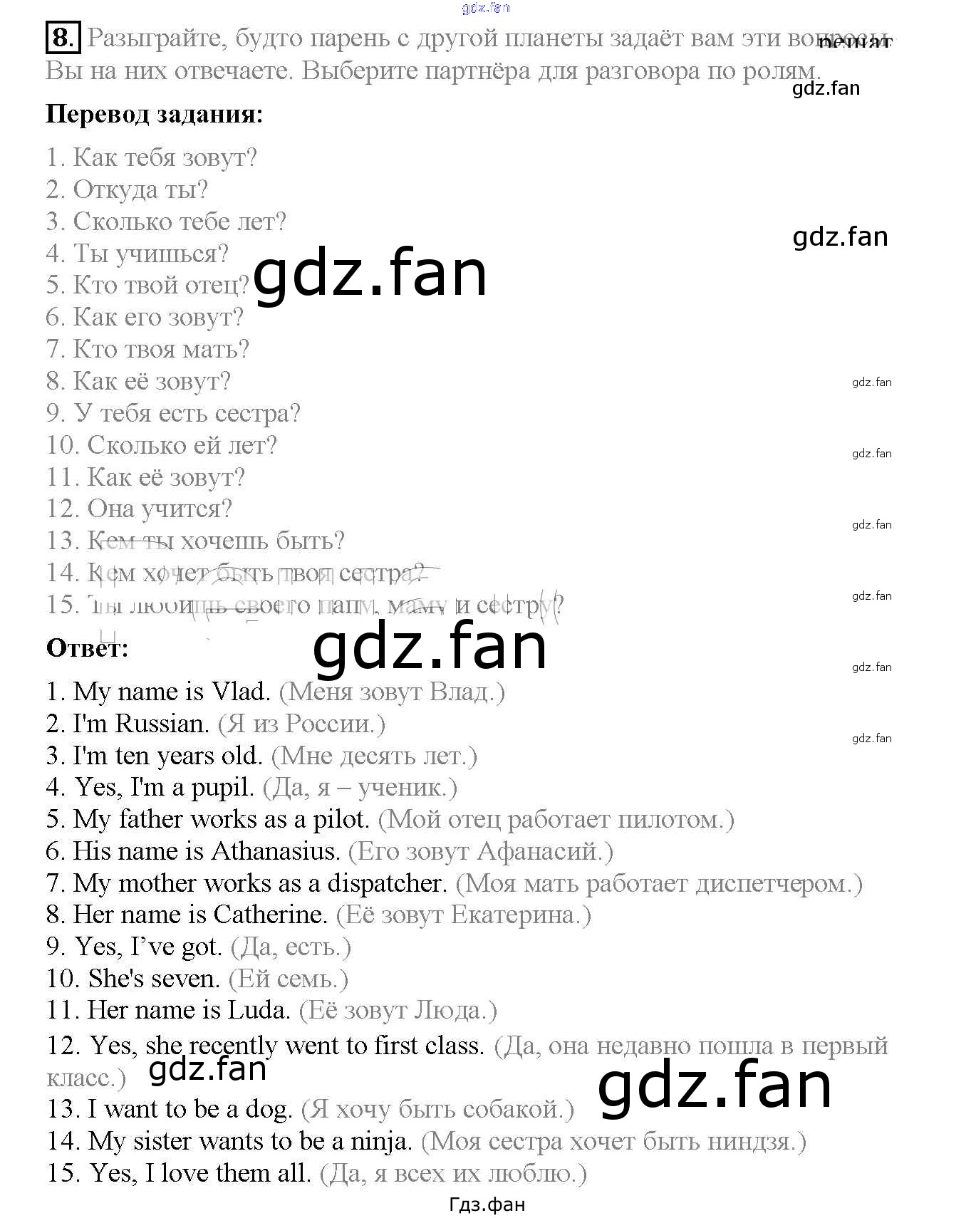 Проверка домашнего задания всегда занимает большое количество времени. На помощь приходит ГДЗ фан по Английскому языку третьего класса. Здесь собраны популярные ответы на 8 (№ 8, 9, 10, 11) Английский язык 3 класс Верещагина