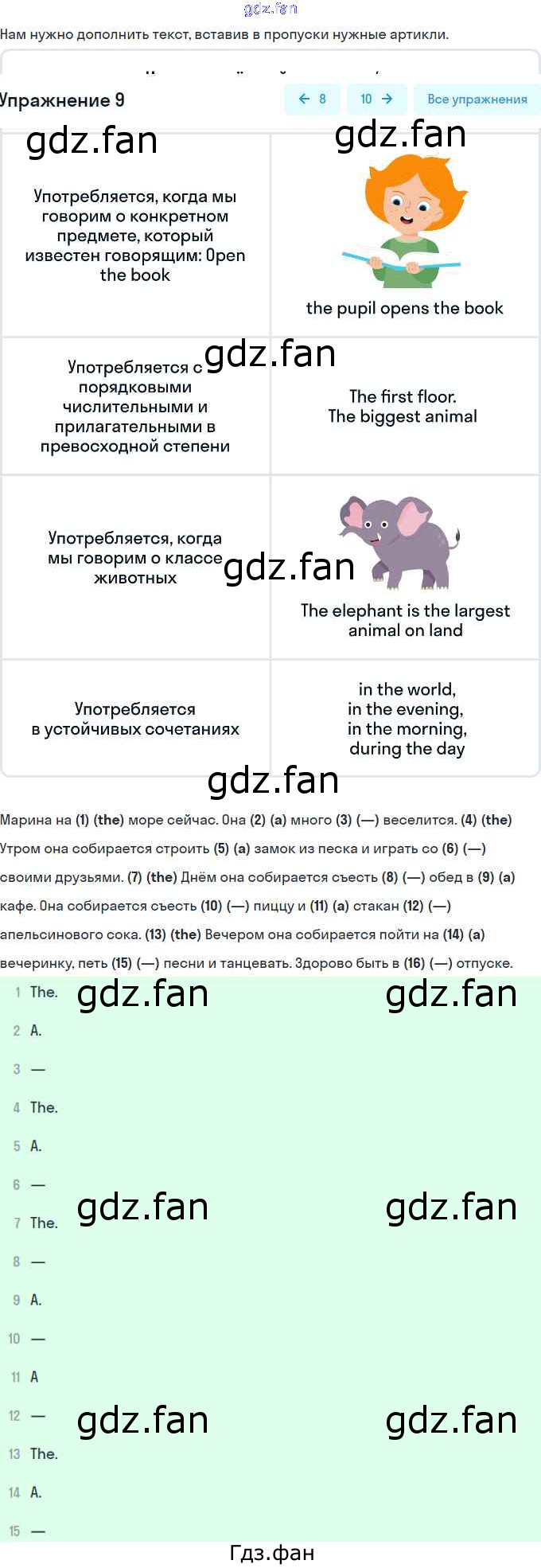 Проверка домашнего задания всегда занимает большое количество времени. На помощь приходит ГДЗ фан по Английскому языку четвертого класса. Здесь собраны популярные ответы на 9 (стр. 114) Английский язык 4 класс сборник упражнений Быкова