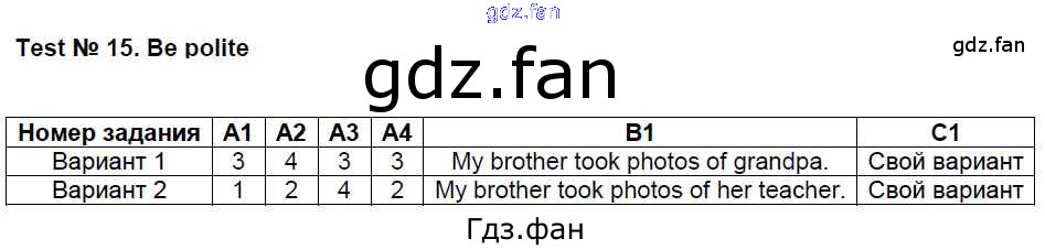Проверка домашнего задания всегда занимает большое количество времени. На помощь приходит ГДЗ фан по Английскому языку четвертого класса. Здесь собраны популярные ответы на Тест №15 (стр. 37-38) Английский язык 4 класс контрольно-измерительные материалы Кулинич Г.Г.
