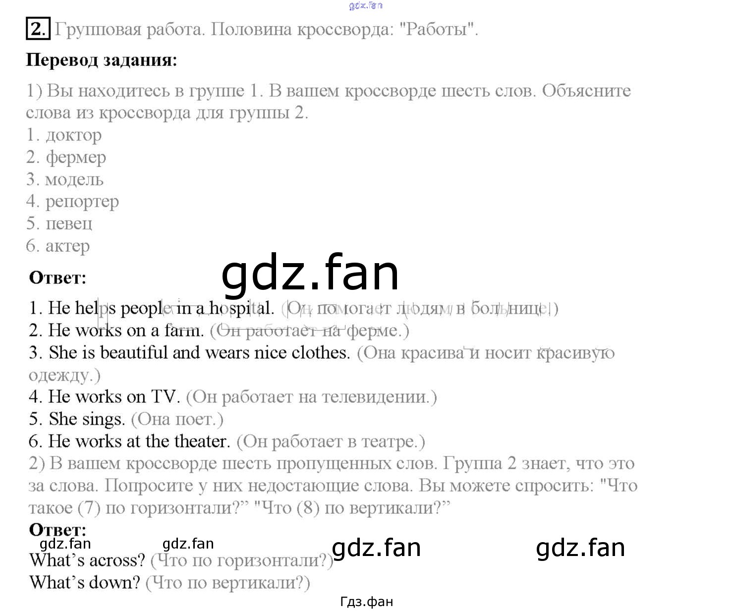 Проверка домашнего задания всегда занимает большое количество времени. На помощь приходит ГДЗ фан по Английскому языку четвертого класса. Здесь собраны популярные ответы на 2 (стр. 70) Английский язык 4 класс рабочая тетрадь Кузовлев В.П.