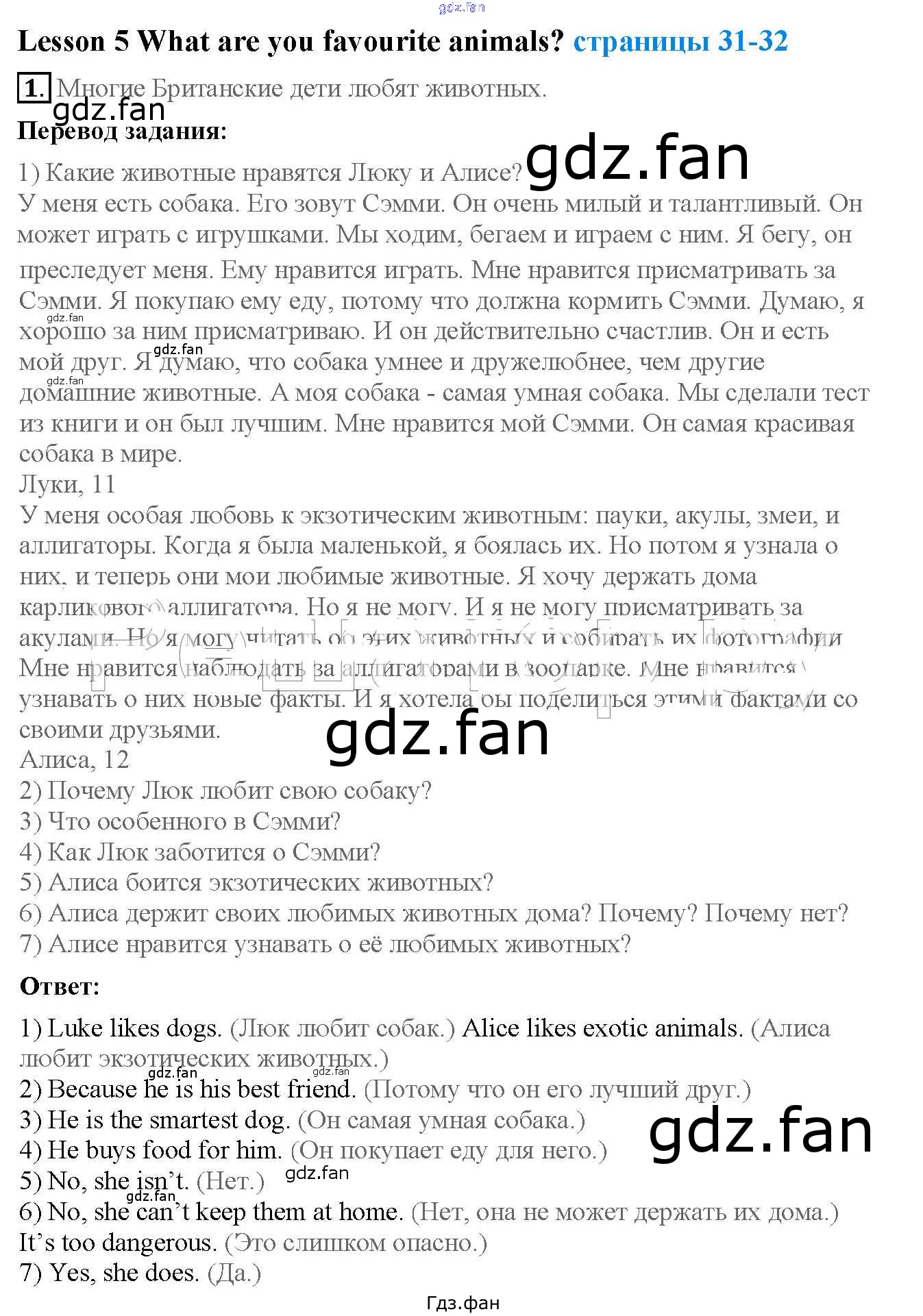 ГДЗ - онлайн ответы на 1 (стр. 31) Английский язык для 4 класса к Учебнику Кузовлев, Перегудова 2015