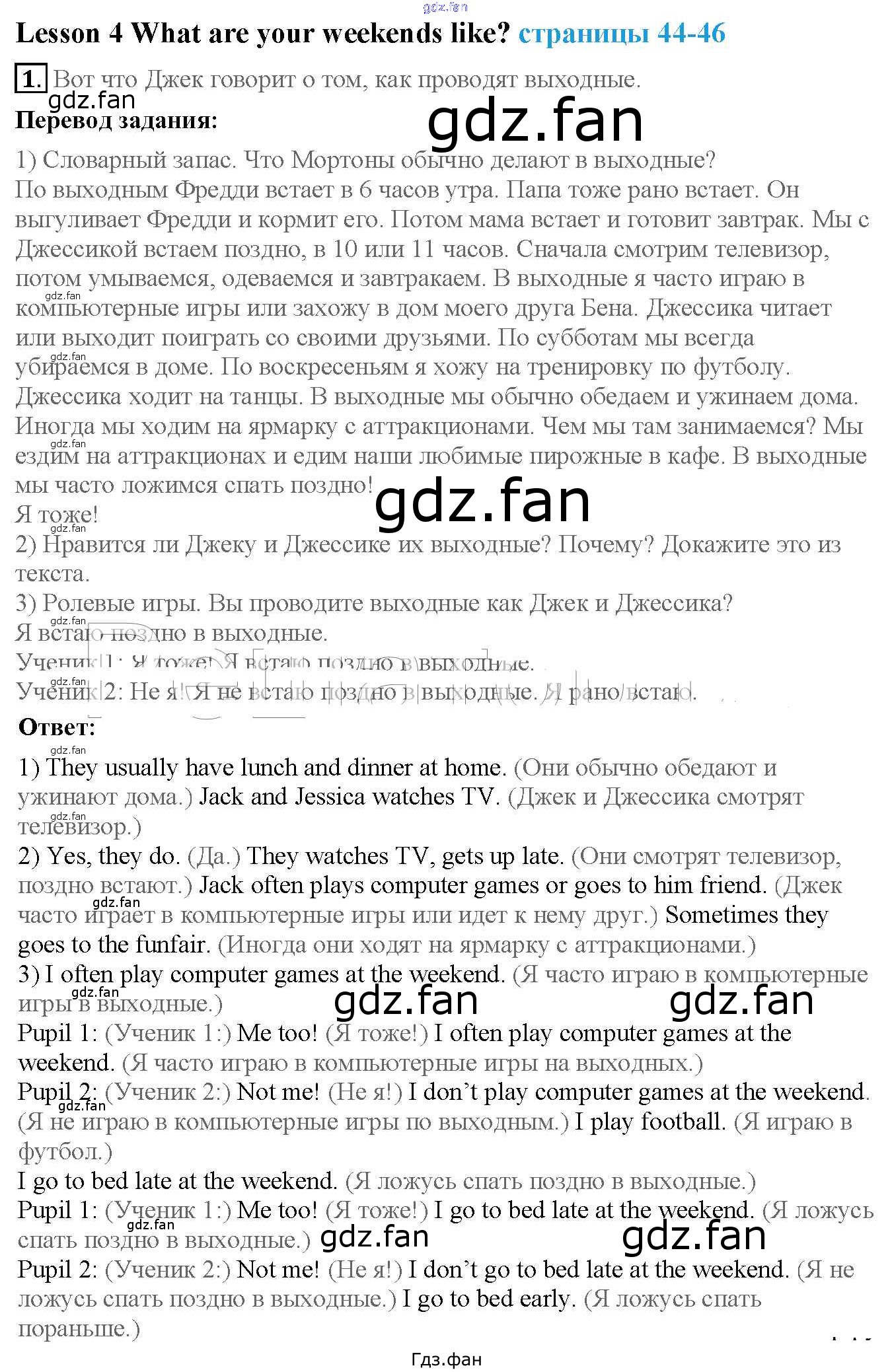 Проверка домашнего задания всегда занимает большое количество времени. На помощь приходит ГДЗ фан по Английскому языку четвертого класса. Здесь собраны популярные ответы на 1 (стр. 44) Английский язык 4 класс Кузовлев В.П.