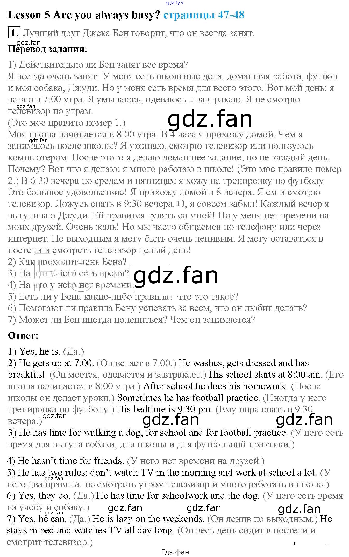 Проверка домашнего задания всегда занимает большое количество времени. На помощь приходит ГДЗ фан по Английскому языку четвертого класса. Здесь собраны популярные ответы на 1 (стр. 47) Английский язык 4 класс Кузовлев В.П.