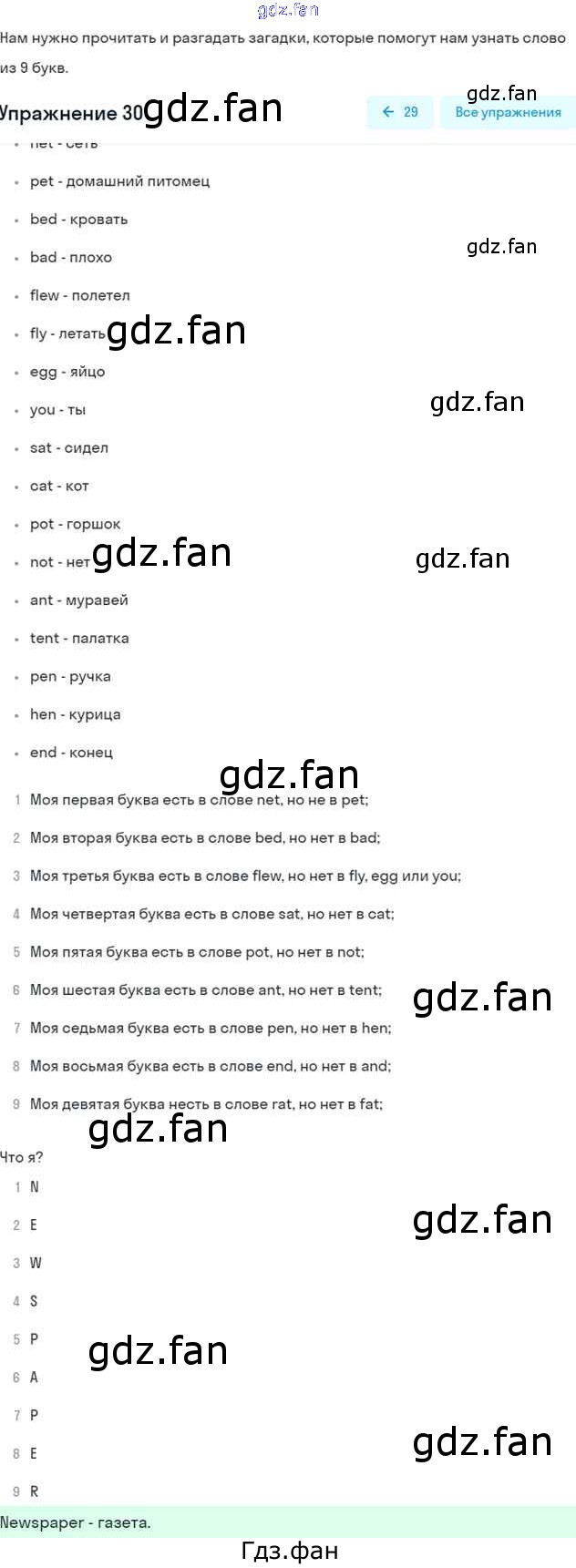 Проверка домашнего задания всегда занимает большое количество времени. На помощь приходит ГДЗ фан по Английскому языку пятого класса. Здесь собраны популярные ответы на 30 (стр. 42) Английский язык 5 класс рабочая тетрадь Rainbow English Афанасьева О.В.
