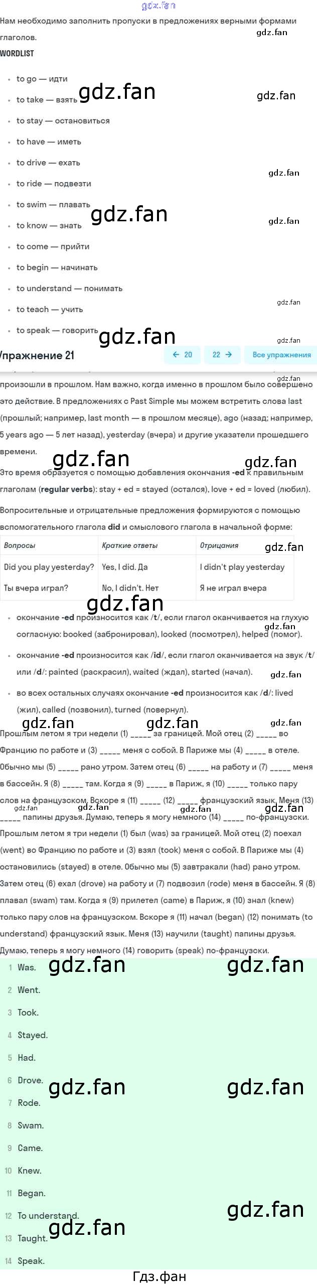 Проверка домашнего задания всегда занимает большое количество времени. На помощь приходит ГДЗ фан по Английскому языку пятого класса. Здесь собраны популярные ответы на 21 (стр. 121) Английский язык 5 класс рабочая тетрадь Rainbow English Афанасьева О.В.