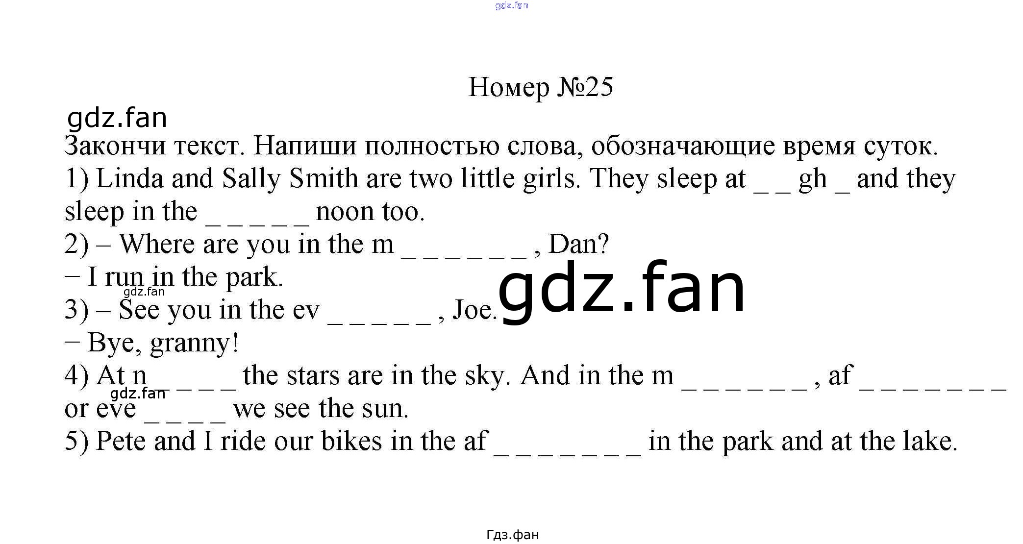Проверка домашнего задания всегда занимает большое количество времени. На помощь приходит ГДЗ фан по Английскому языку пятого класса. Здесь собраны популярные ответы на 25 (стр. 43) Английский язык как второй иностранный 5 класс рабочая тетрадь Афанасьева О.В.