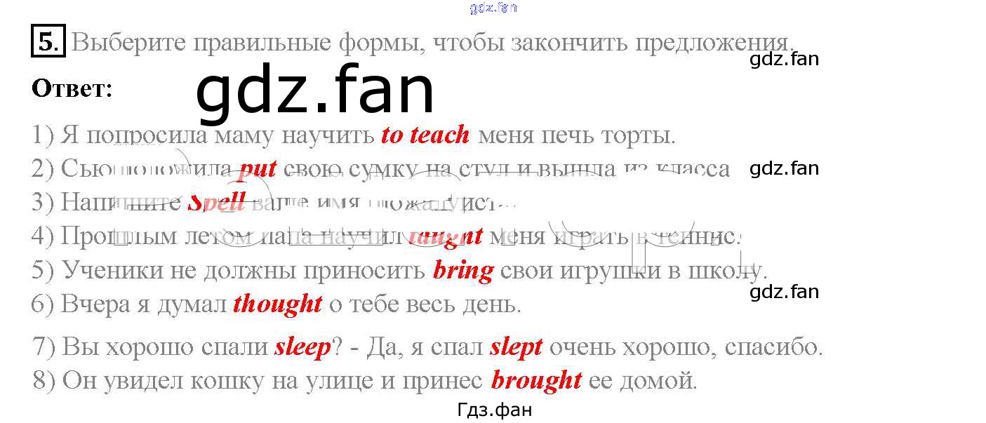 Проверка домашнего задания всегда занимает большое количество времени. На помощь приходит ГДЗ фан по Английскому языку пятого класса. Здесь собраны популярные ответы на 5 (стр. 97) Английский язык 5 класс Rainbow English Афанасьева О.В.