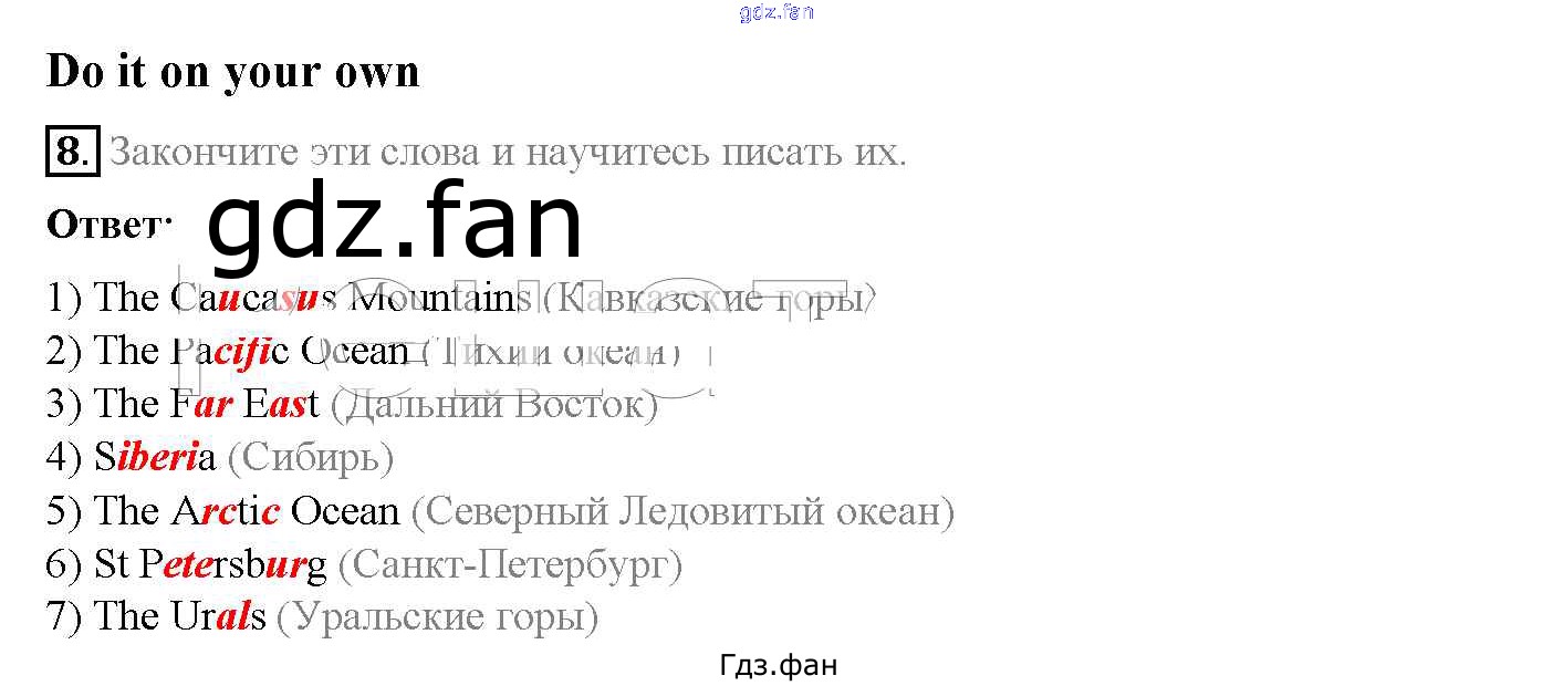 Проверка домашнего задания всегда занимает большое количество времени. На помощь приходит ГДЗ фан по Английскому языку пятого класса. Здесь собраны популярные ответы на 8 (стр. 105) Английский язык 5 класс Rainbow English Афанасьева О.В.
