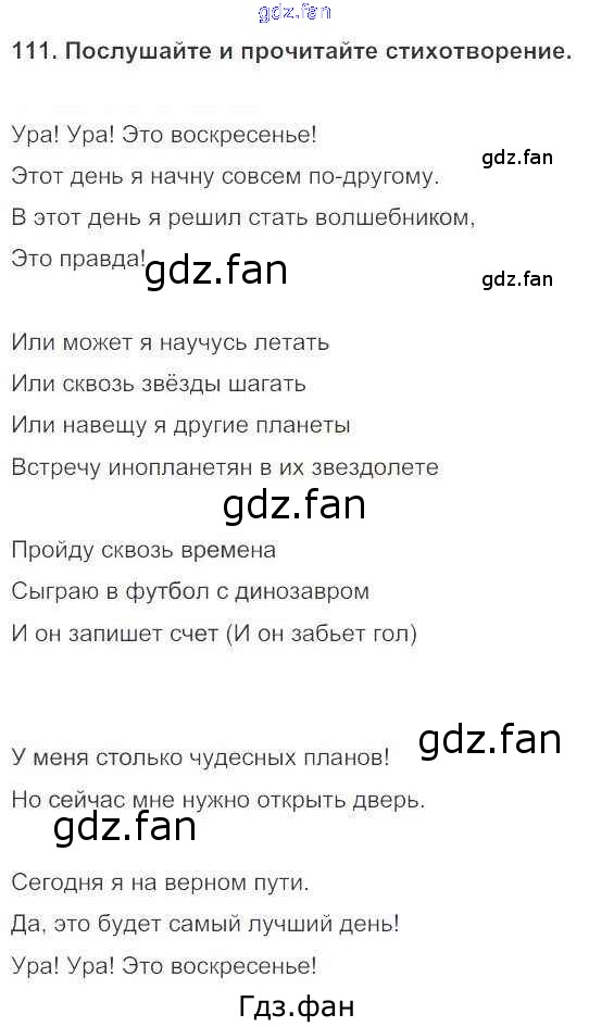Проверка домашнего задания всегда занимает большое количество времени. На помощь приходит ГДЗ фан по Английскому языку пятого класса. Здесь собраны популярные ответы на 111 (стр. 33) Английский язык 5 класс Enjoy English Биболетова М.З.