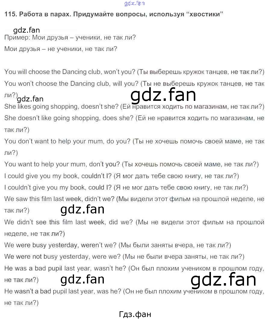 Проверка домашнего задания всегда занимает большое количество времени. На помощь приходит ГДЗ фан по Английскому языку пятого класса. Здесь собраны популярные ответы на 115 (стр. 35) Английский язык 5 класс Enjoy English Биболетова М.З.