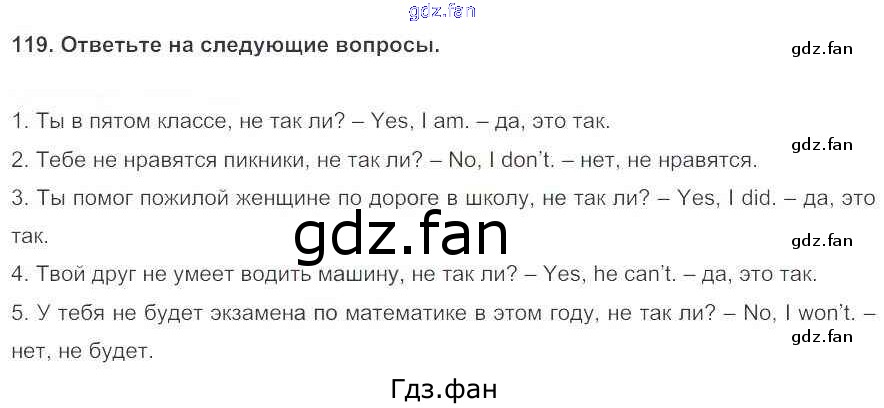 Проверка домашнего задания всегда занимает большое количество времени. На помощь приходит ГДЗ фан по Английскому языку пятого класса. Здесь собраны популярные ответы на 119 (стр. 35) Английский язык 5 класс Enjoy English Биболетова М.З.