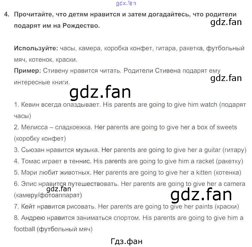 Проверка домашнего задания всегда занимает большое количество времени. На помощь приходит ГДЗ фан по Английскому языку пятого класса. Здесь собраны популярные ответы на 4 (стр. 78) Английский язык 5 класс Enjoy English Биболетова М.З.