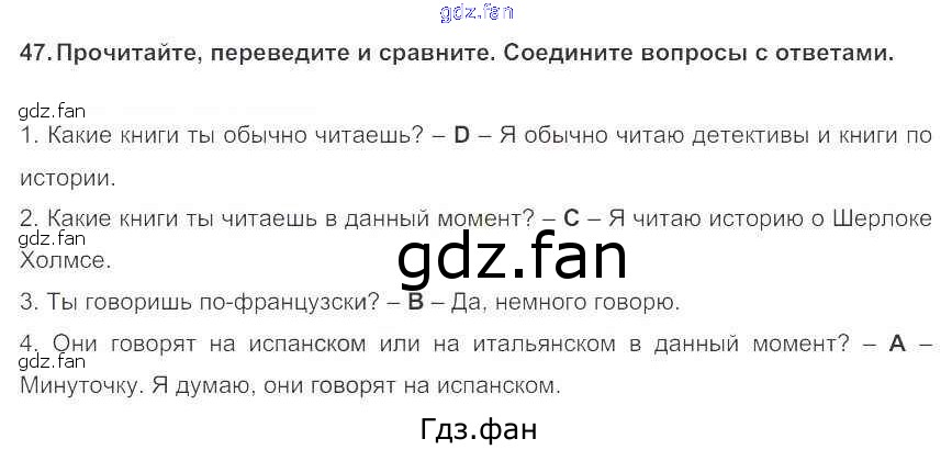 Проверка домашнего задания всегда занимает большое количество времени. На помощь приходит ГДЗ фан по Английскому языку пятого класса. Здесь собраны популярные ответы на 47 (стр. 66) Английский язык 5 класс Enjoy English Биболетова М.З.