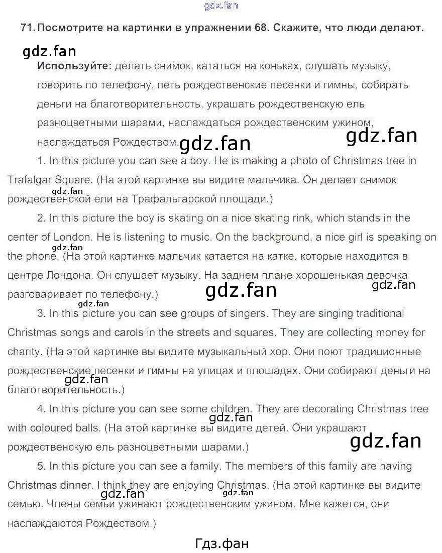 Проверка домашнего задания всегда занимает большое количество времени. На помощь приходит ГДЗ фан по Английскому языку пятого класса. Здесь собраны популярные ответы на 71 (стр. 73) Английский язык 5 класс Enjoy English Биболетова М.З.