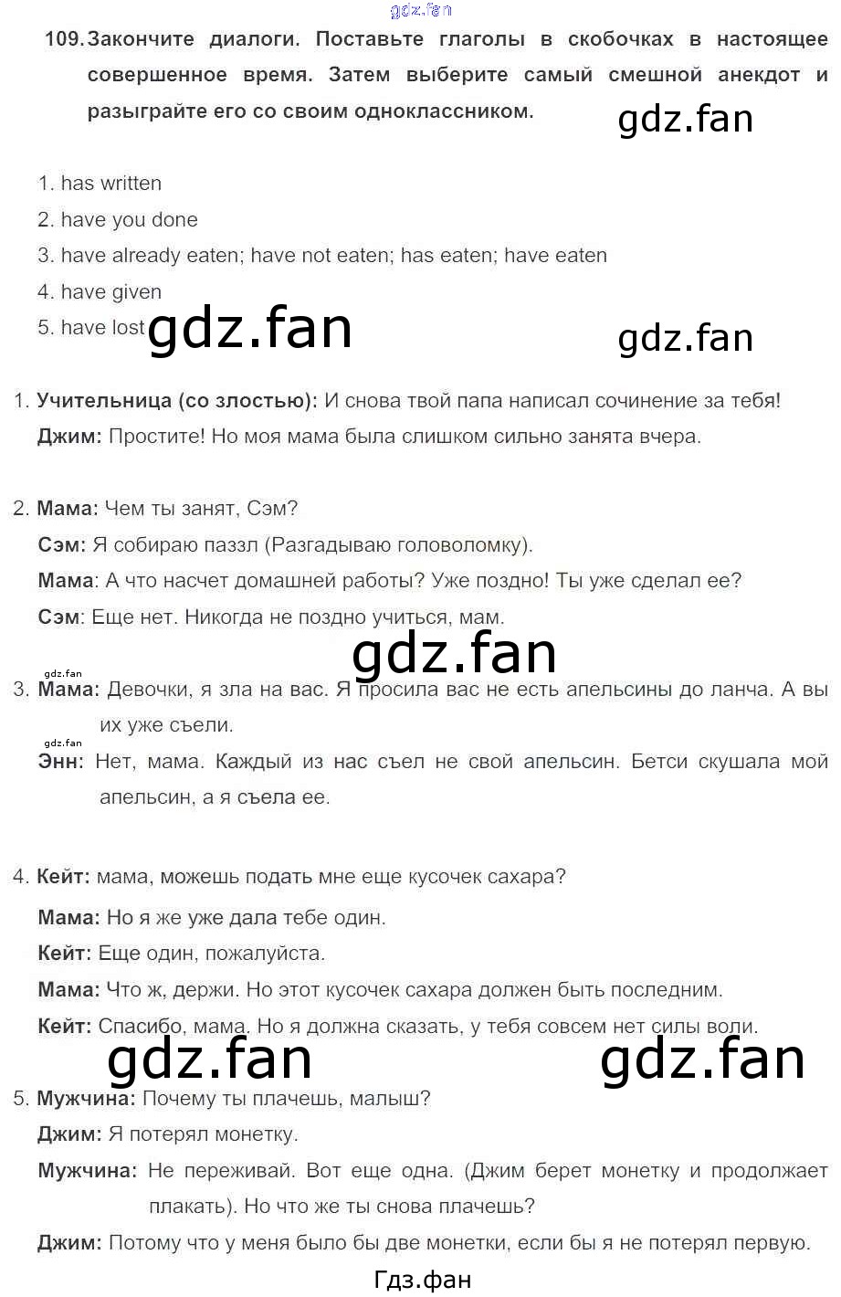 Проверка домашнего задания всегда занимает большое количество времени. На помощь приходит ГДЗ фан по Английскому языку пятого класса. Здесь собраны популярные ответы на 109 (стр. 118) Английский язык 5 класс Enjoy English Биболетова М.З.