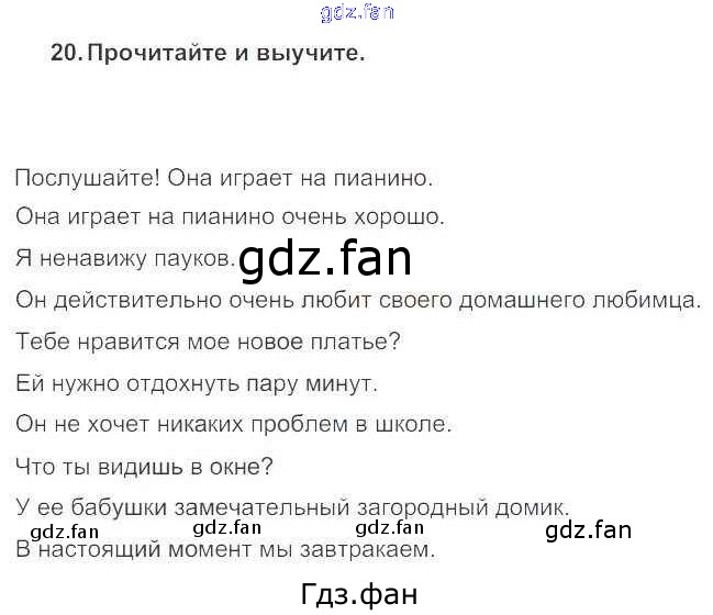 Проверка домашнего задания всегда занимает большое количество времени. На помощь приходит ГДЗ фан по Английскому языку пятого класса. Здесь собраны популярные ответы на 20 (стр. 91) Английский язык 5 класс Enjoy English Биболетова М.З.