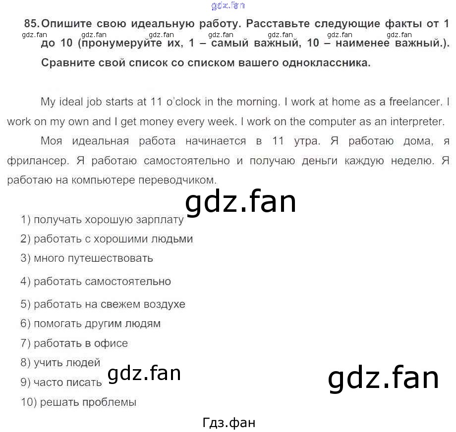 Проверка домашнего задания всегда занимает большое количество времени. На помощь приходит ГДЗ фан по Английскому языку пятого класса. Здесь собраны популярные ответы на 85 (стр. 163) Английский язык 5 класс Enjoy English Биболетова М.З.