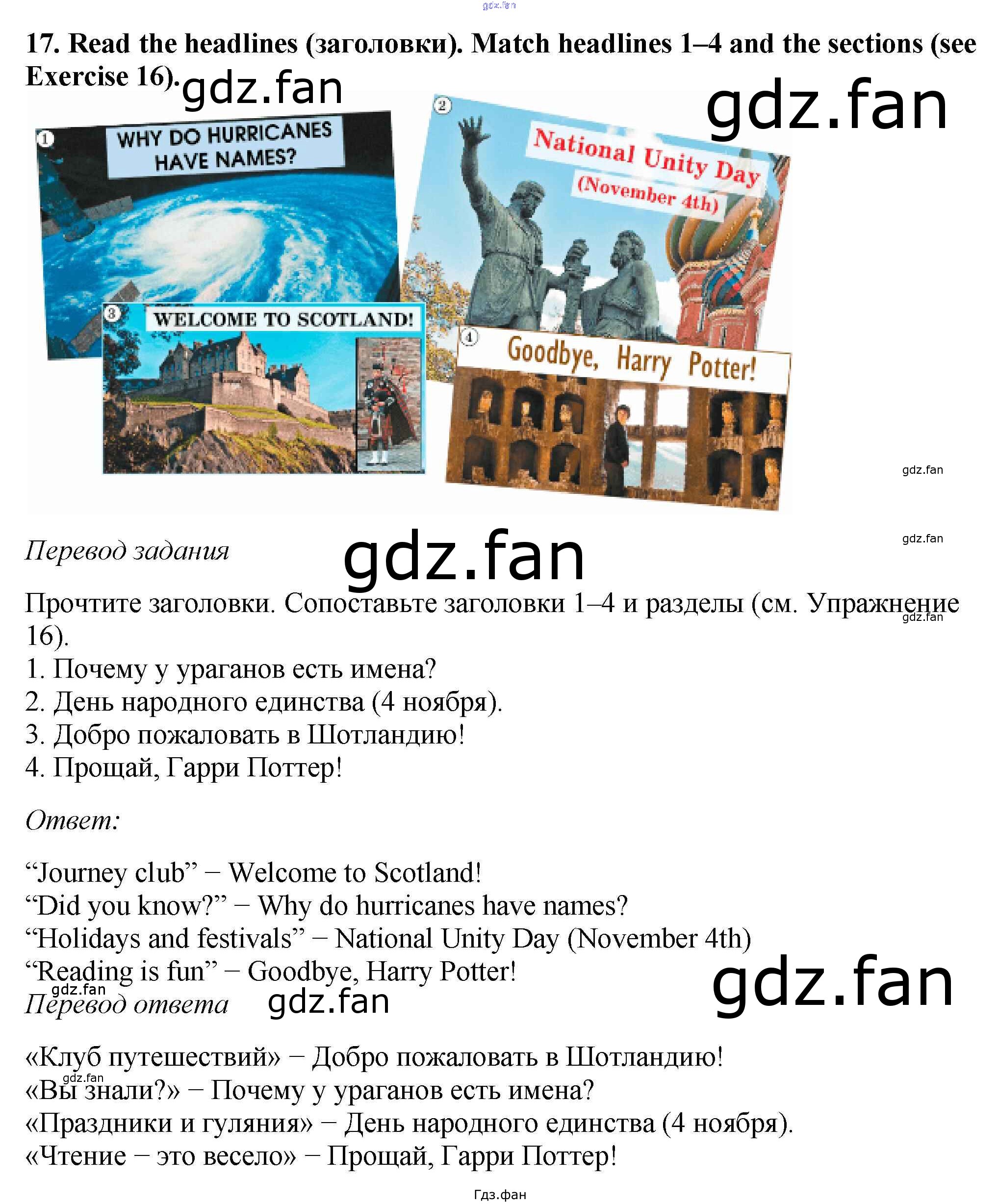 Проверка домашнего задания всегда занимает большое количество времени. На помощь приходит ГДЗ фан по Английскому языку пятого класса. Здесь собраны популярные ответы на 17 (стр. 9) Английский язык 5 класс Вербицкая М.В.