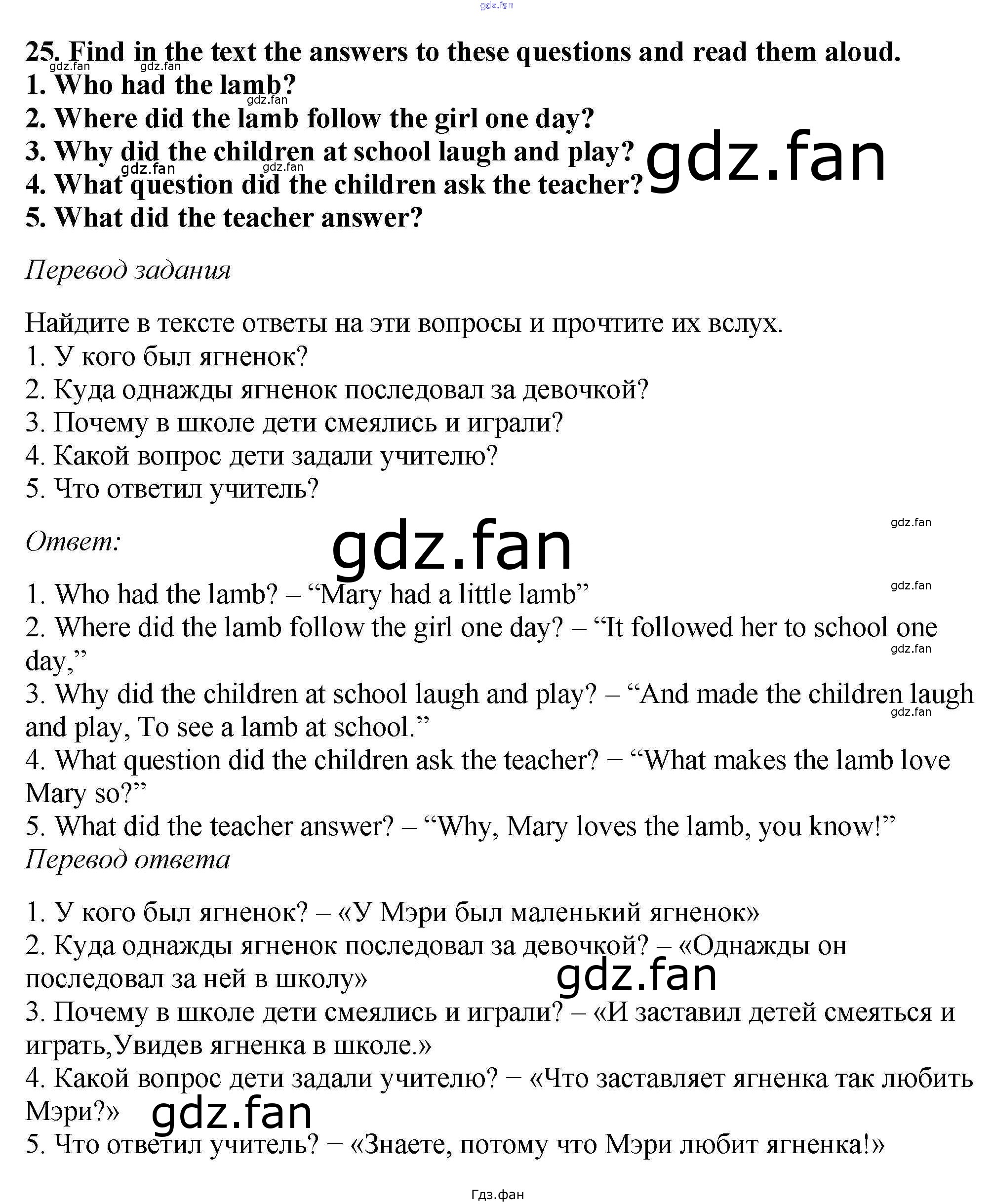 Проверка домашнего задания всегда занимает большое количество времени. На помощь приходит ГДЗ фан по Английскому языку пятого класса. Здесь собраны популярные ответы на 25 (стр. 12) Английский язык 5 класс Вербицкая М.В.