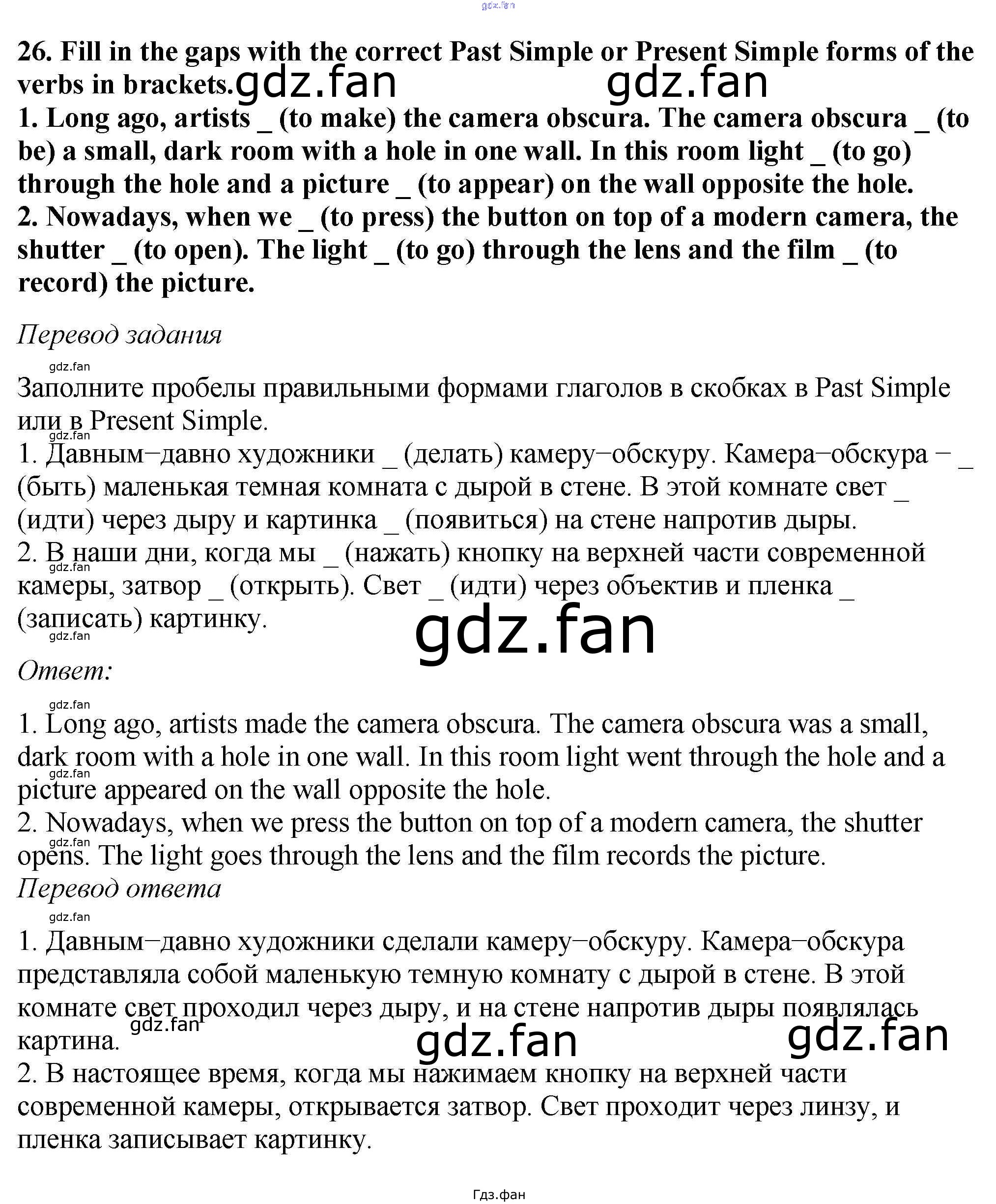 Проверка домашнего задания всегда занимает большое количество времени. На помощь приходит ГДЗ фан по Английскому языку пятого класса. Здесь собраны популярные ответы на 26 (стр. 21) Английский язык 5 класс Вербицкая М.В.