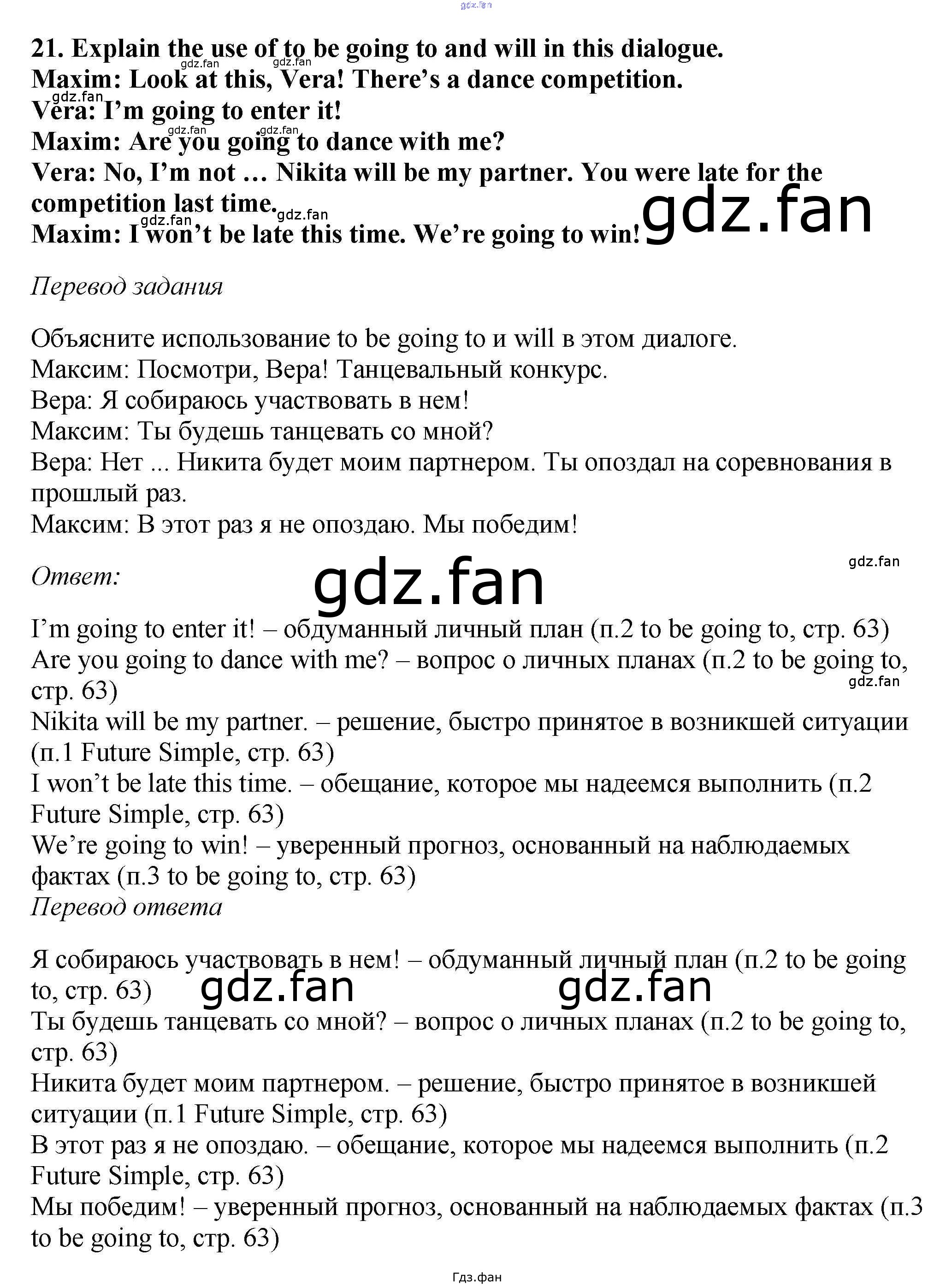 Проверка домашнего задания всегда занимает большое количество времени. На помощь приходит ГДЗ фан по Английскому языку пятого класса. Здесь собраны популярные ответы на 21 (стр. 63) Английский язык 5 класс Вербицкая М.В.