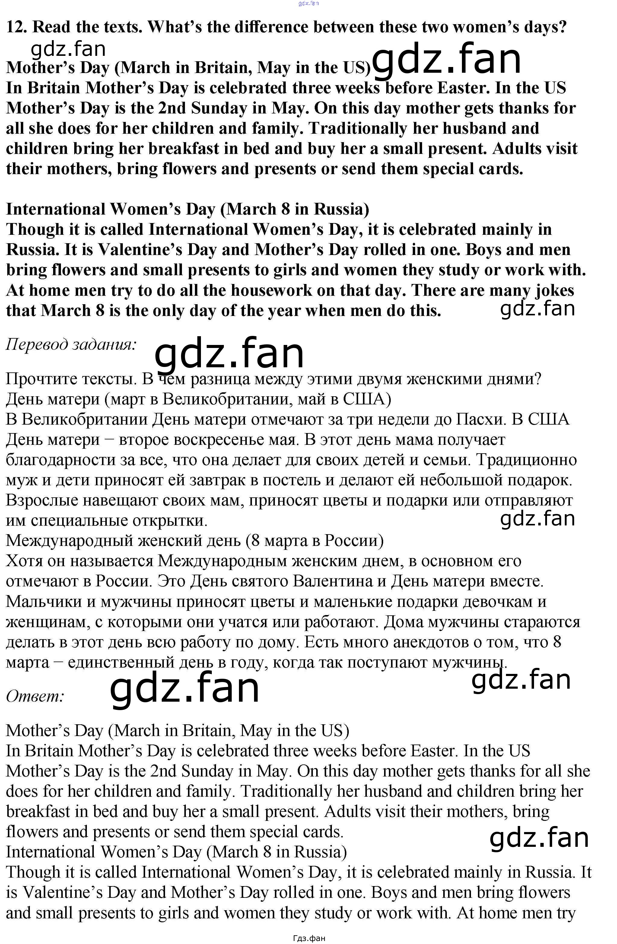 Проверка домашнего задания всегда занимает большое количество времени. На помощь приходит ГДЗ фан по Английскому языку пятого класса. Здесь собраны популярные ответы на 12 (стр. 47) Английский язык 5 класс Вербицкая М.В.