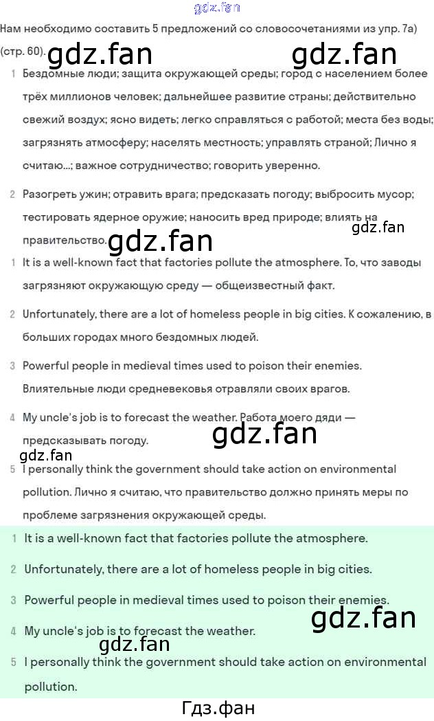 Проверка домашнего задания всегда занимает большое количество времени. На помощь приходит ГДЗ фан по Английскому языку шестого класса. Здесь собраны популярные ответы на 7 (стр. 60) Английский язык 6 класс Афанасьева (Углубленный курс)