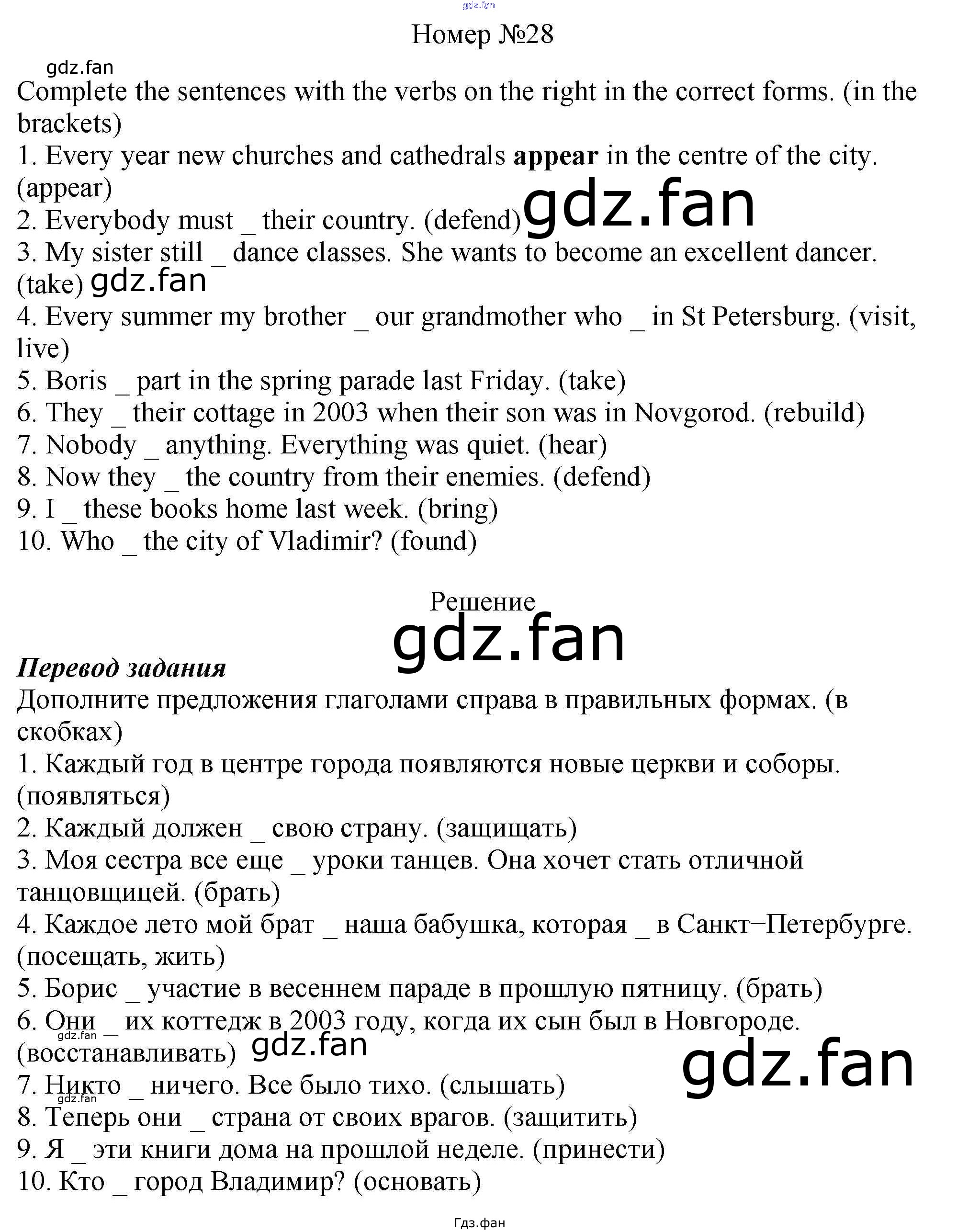 Проверка домашнего задания всегда занимает большое количество времени. На помощь приходит ГДЗ фан по Английскому языку шестого класса. Здесь собраны популярные ответы на 28 (стр. 20) Английский язык 6 класс рабочая тетрадь Rainbow Афанасьева О.В.