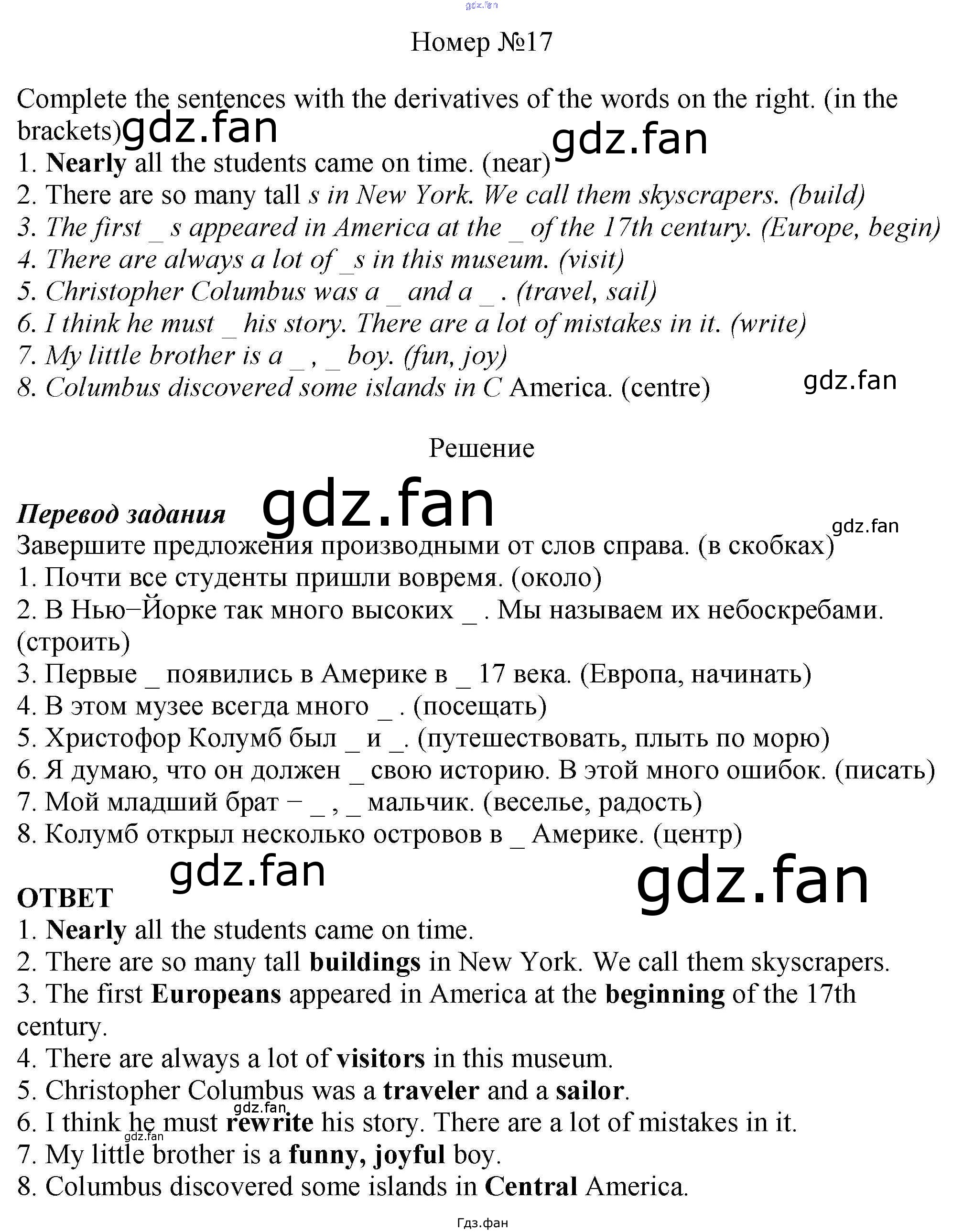 Проверка домашнего задания всегда занимает большое количество времени. На помощь приходит ГДЗ фан по Английскому языку шестого класса. Здесь собраны популярные ответы на 17 (стр. 85) Английский язык 6 класс рабочая тетрадь Rainbow Афанасьева О.В.