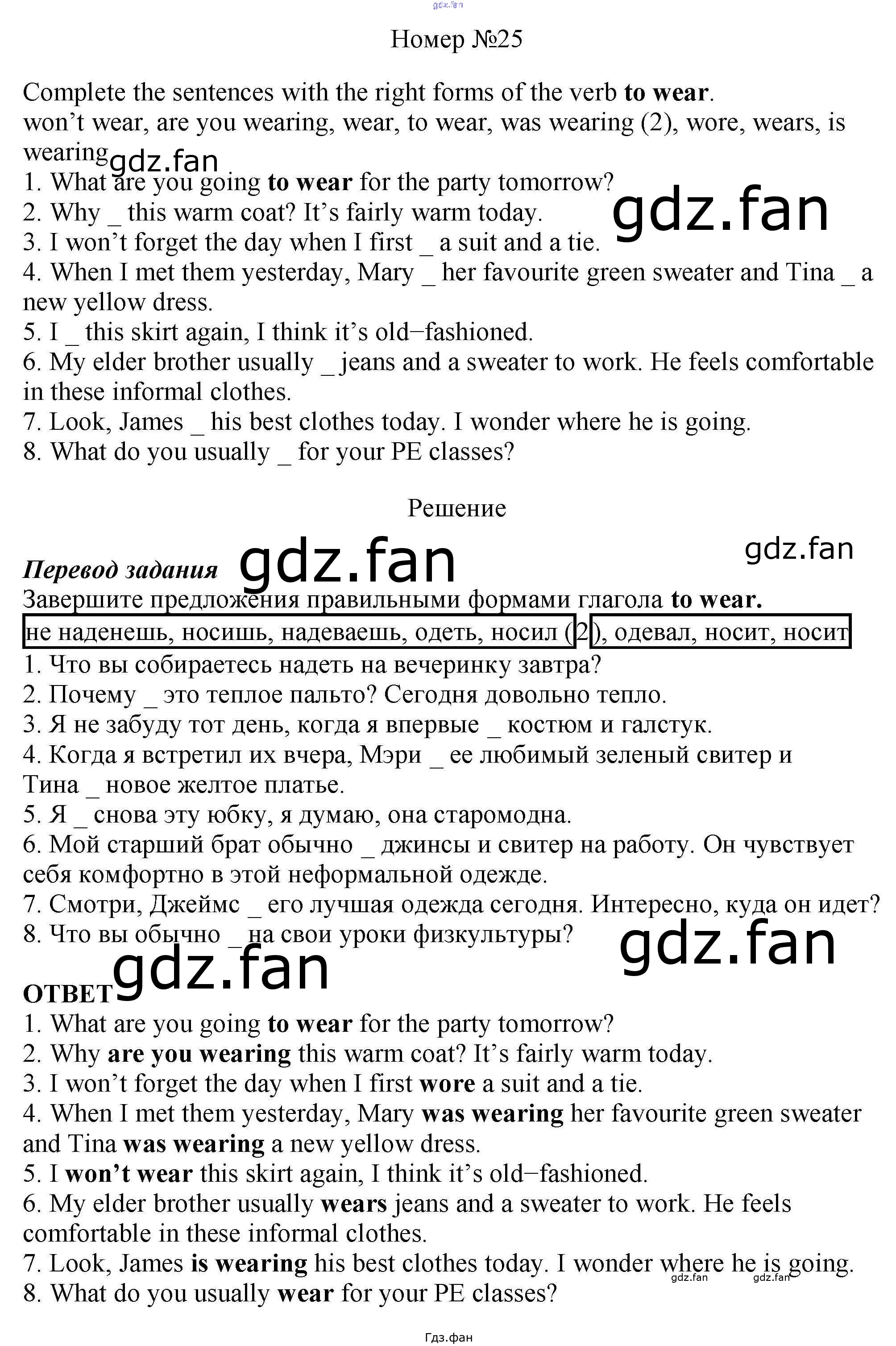 Проверка домашнего задания всегда занимает большое количество времени. На помощь приходит ГДЗ фан по Английскому языку шестого класса. Здесь собраны популярные ответы на 25 (стр. 112) Английский язык 6 класс рабочая тетрадь Rainbow Афанасьева О.В.