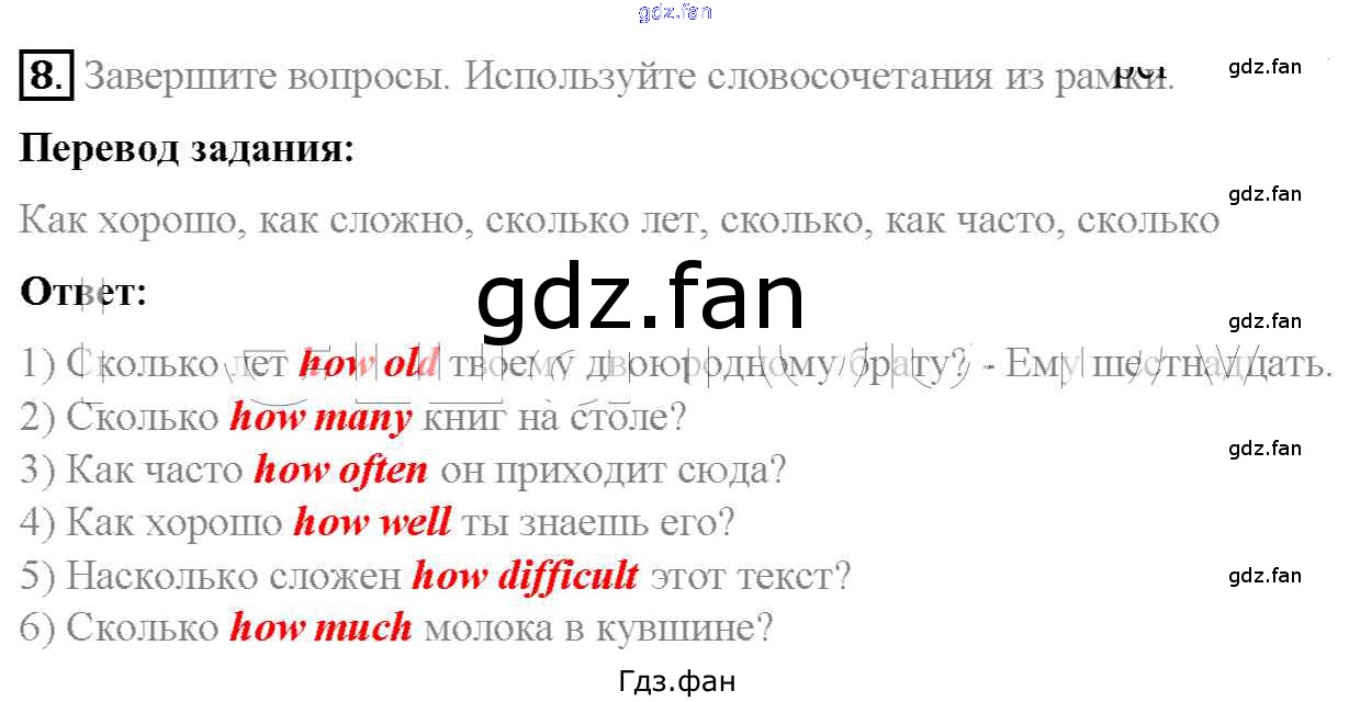 Проверка домашнего задания всегда занимает большое количество времени. На помощь приходит ГДЗ фан по Английскому языку шестого класса. Здесь собраны популярные ответы на 8 (стр. 104) Английский язык 6 класс Rainbow Афанасьева О.В.