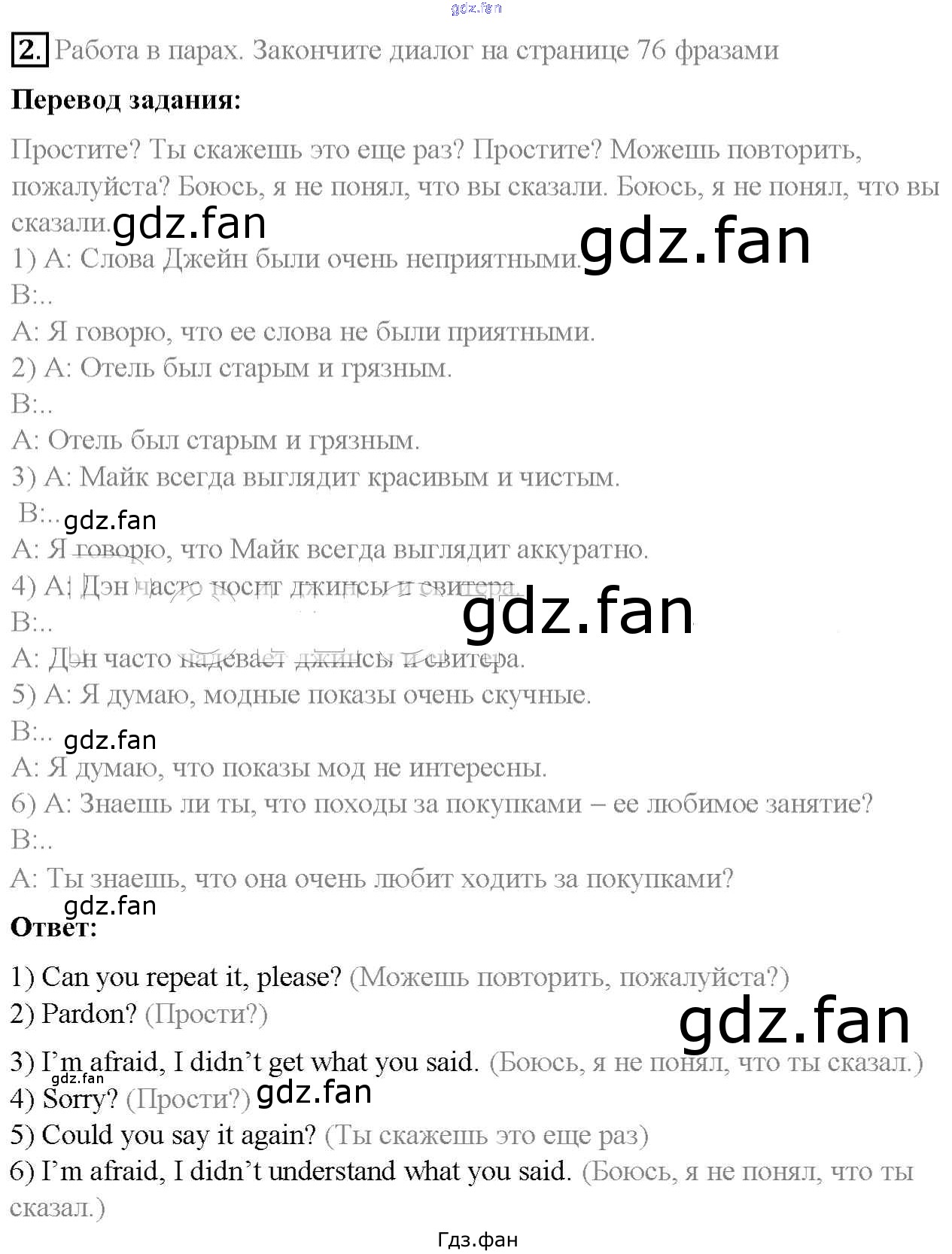 Проверка домашнего задания всегда занимает большое количество времени. На помощь приходит ГДЗ фан по Английскому языку шестого класса. Здесь собраны популярные ответы на 2 (стр. 75) Английский язык 6 класс Rainbow Афанасьева О.В.