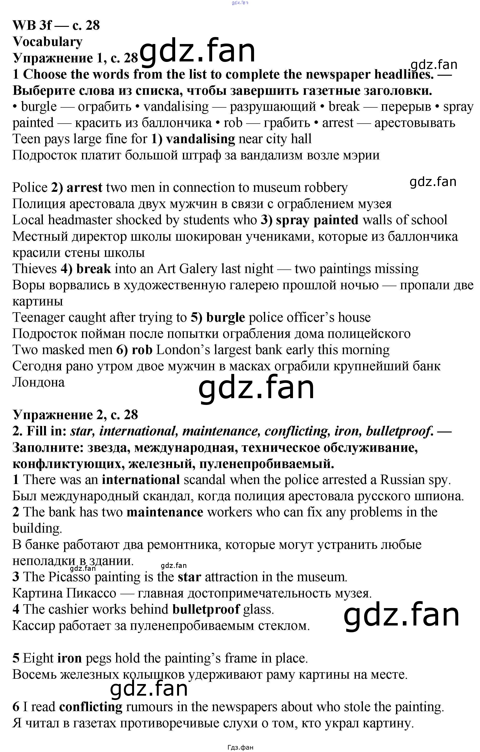 Проверка домашнего задания всегда занимает большое количество времени. На помощь приходит ГДЗ фан по Английскому языку шестого класса. Здесь собраны популярные ответы на 28 (3f № 1, 2, 3, 4, 5) Английский язык 6 класс рабочая тетрадь Баранова