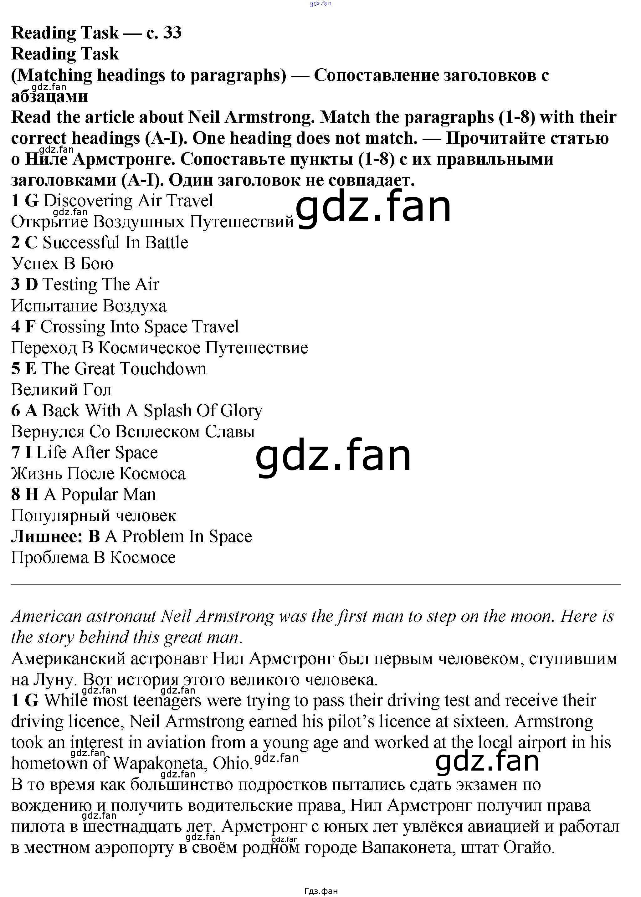 Проверка домашнего задания всегда занимает большое количество времени. На помощь приходит ГДЗ фан по Английскому языку шестого класса. Здесь собраны популярные ответы на 33 (Reading Task) Английский язык 6 класс рабочая тетрадь Баранова