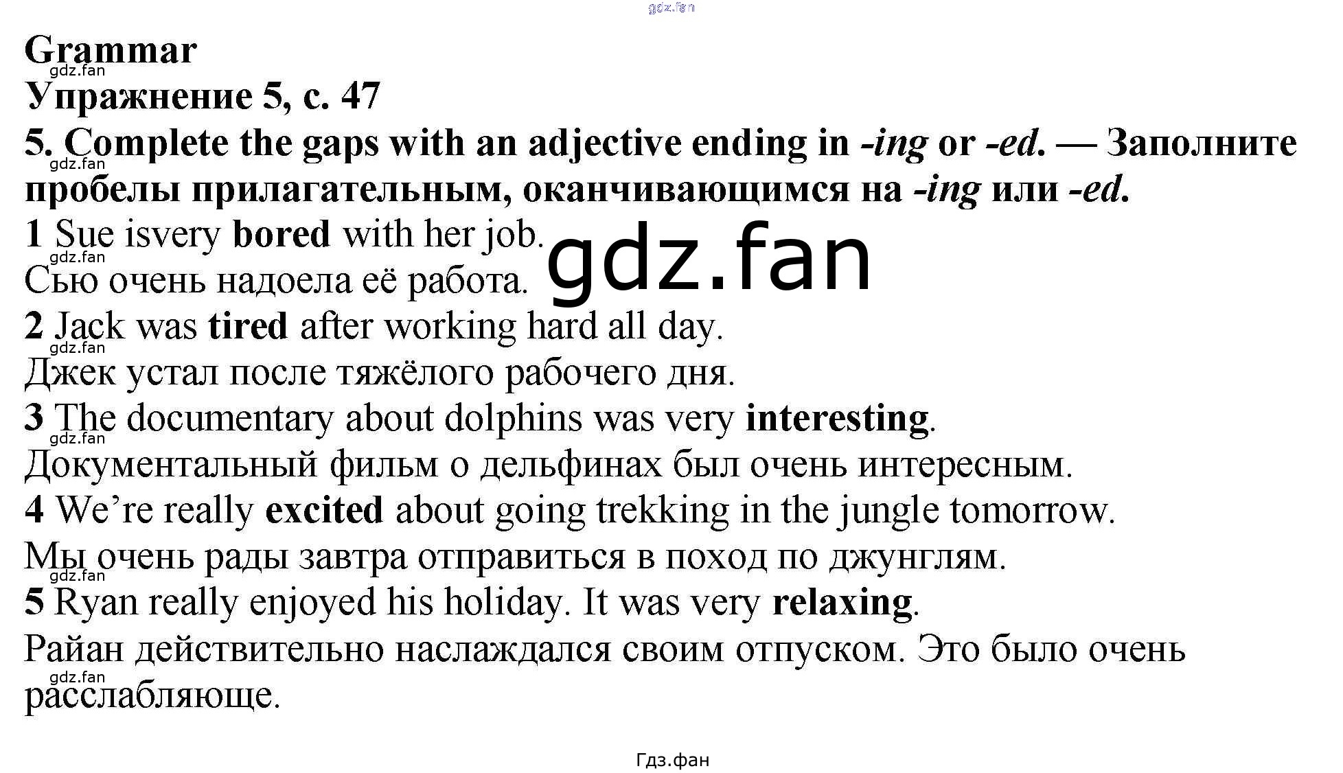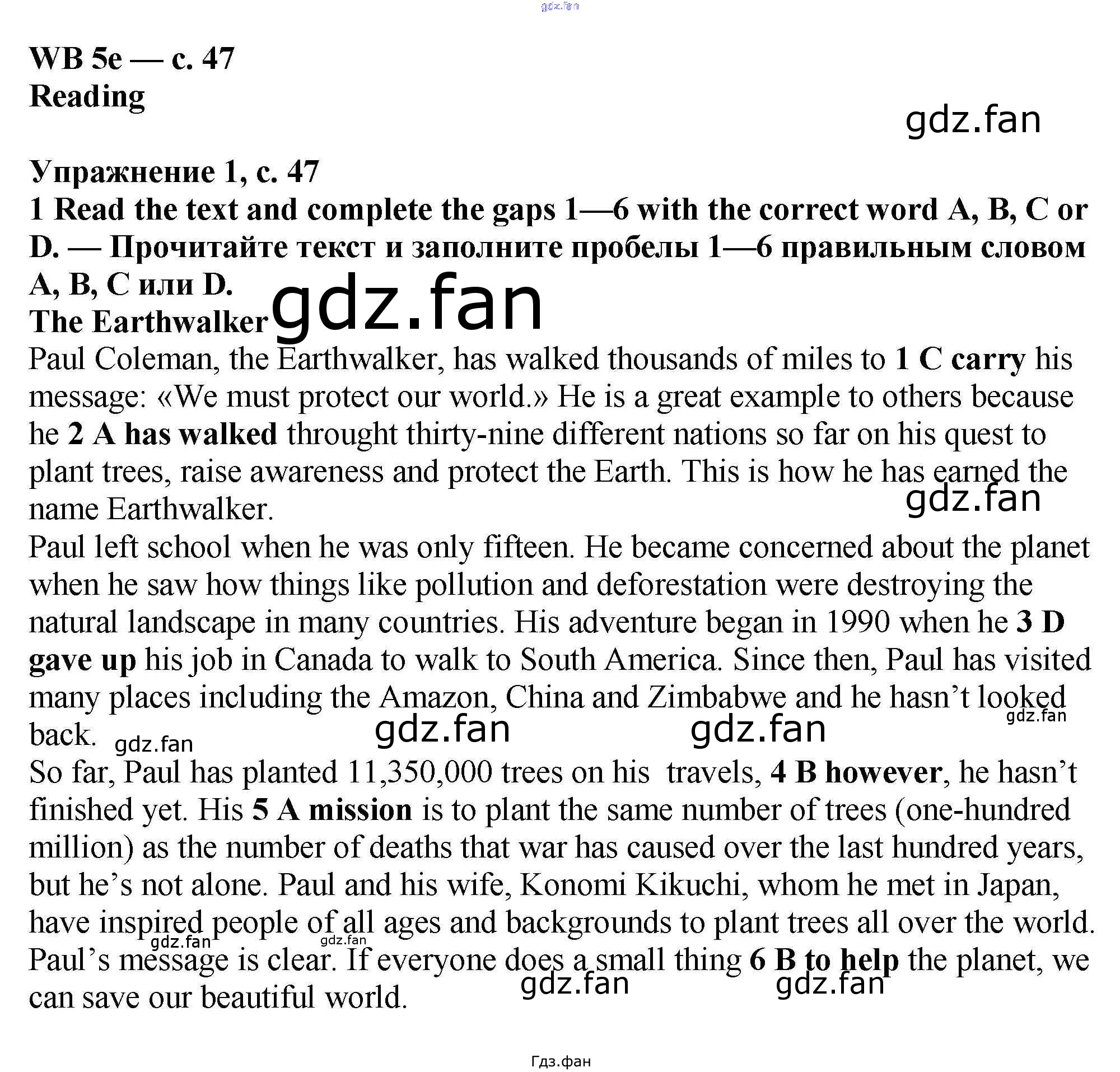 Проверка домашнего задания всегда занимает большое количество времени. На помощь приходит ГДЗ фан по Английскому языку шестого класса. Здесь собраны популярные ответы на 47 (5e № 1, 2, 3, 4, 5) Английский язык 6 класс рабочая тетрадь Баранова