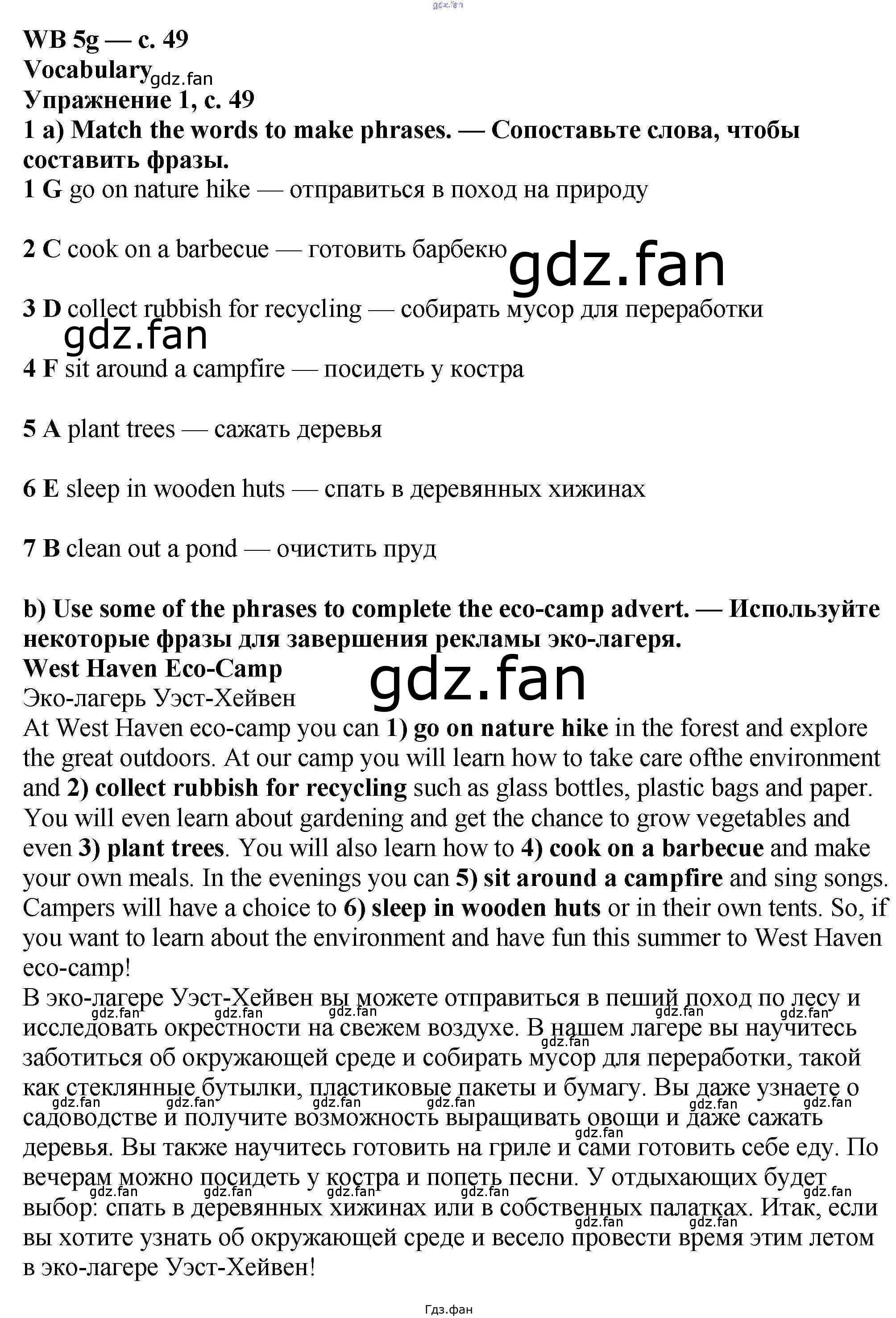 Проверка домашнего задания всегда занимает большое количество времени. На помощь приходит ГДЗ фан по Английскому языку шестого класса. Здесь собраны популярные ответы на 49 (5g № 1, 2, 3) Английский язык 6 класс рабочая тетрадь Баранова