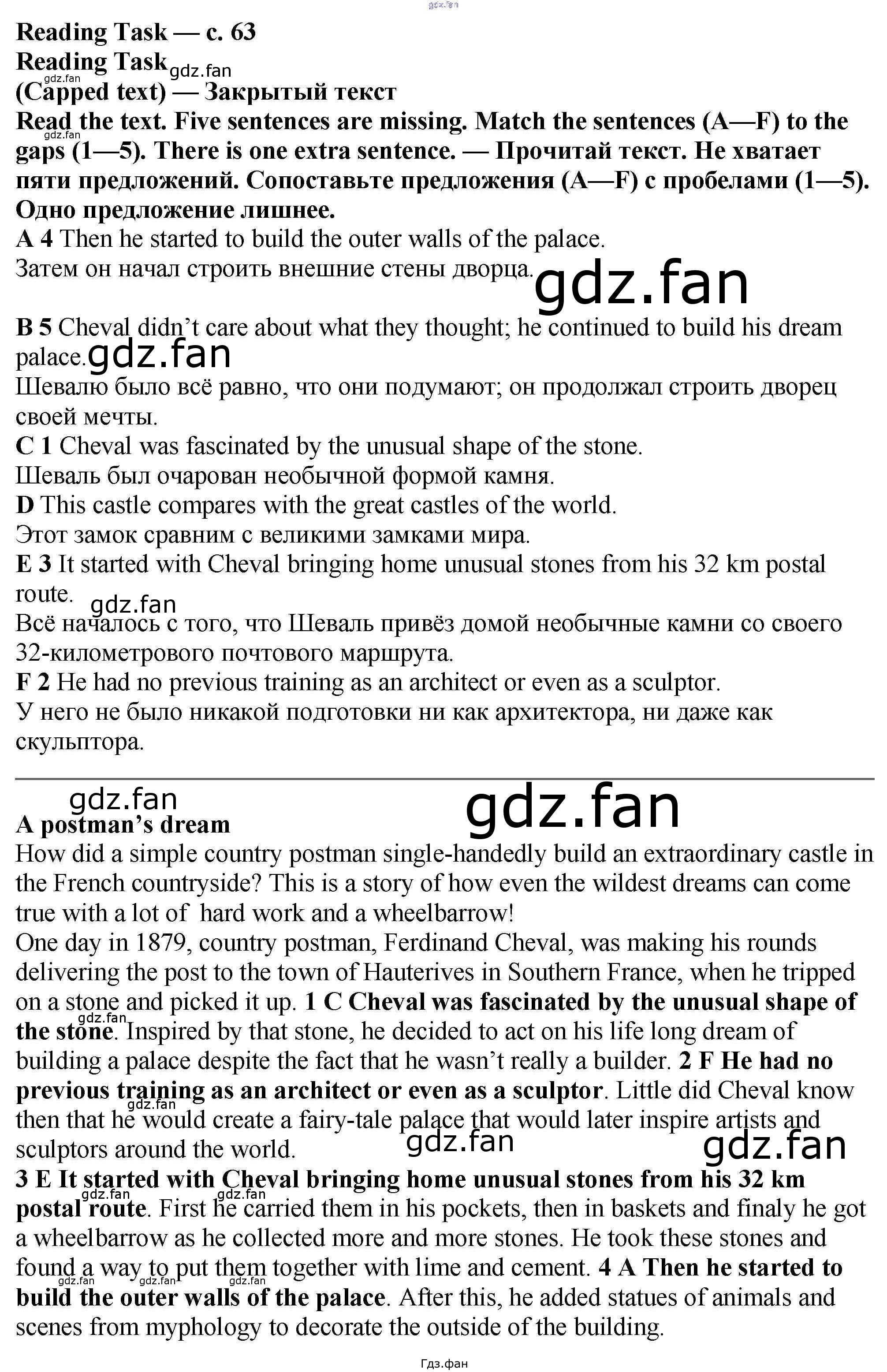 Проверка домашнего задания всегда занимает большое количество времени. На помощь приходит ГДЗ фан по Английскому языку шестого класса. Здесь собраны популярные ответы на 63 (Reading Task) Английский язык 6 класс рабочая тетрадь Баранова