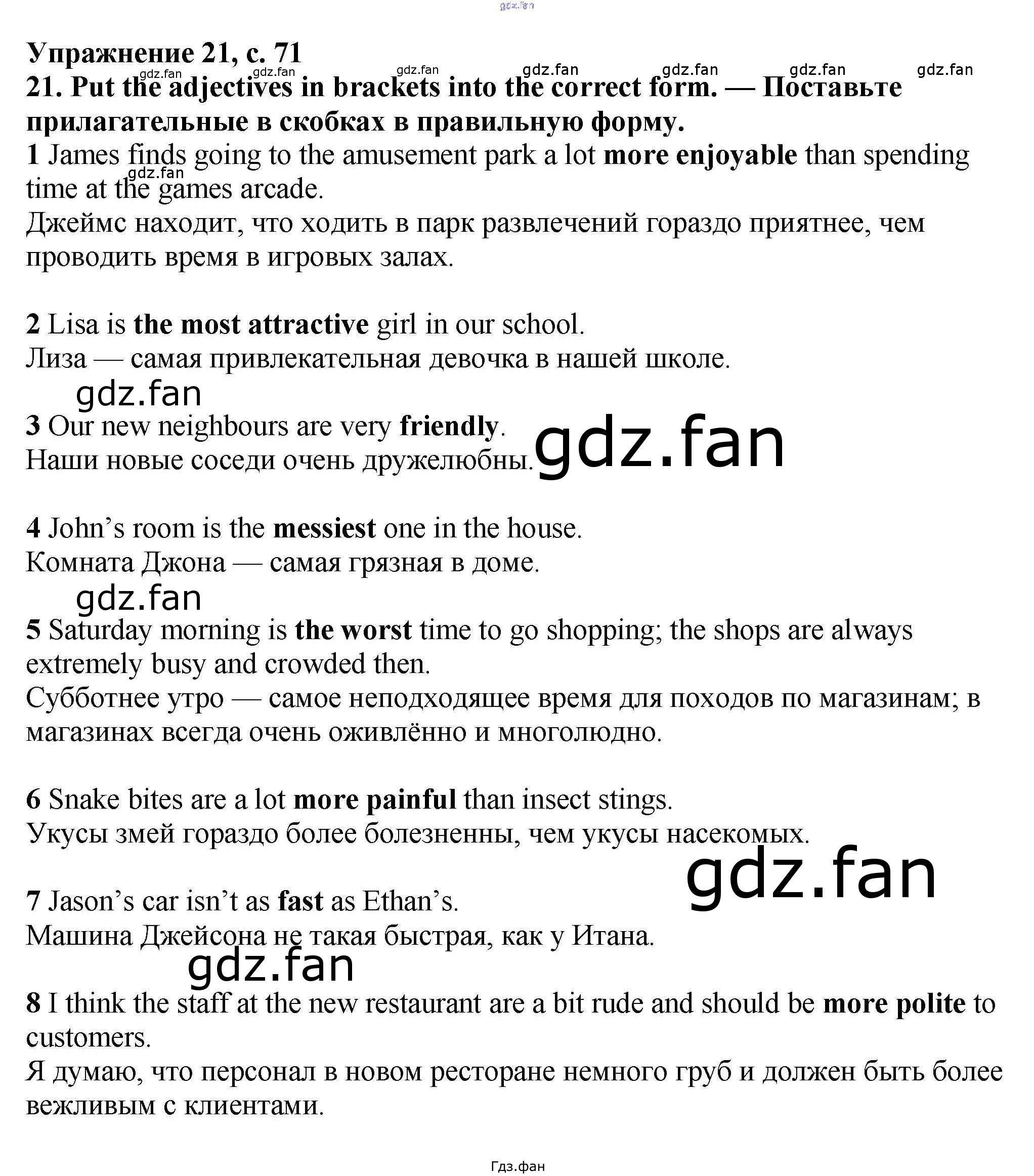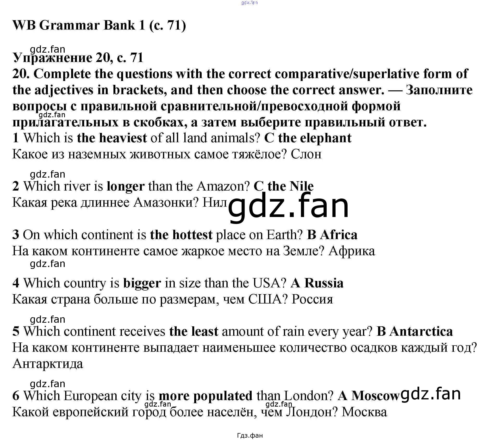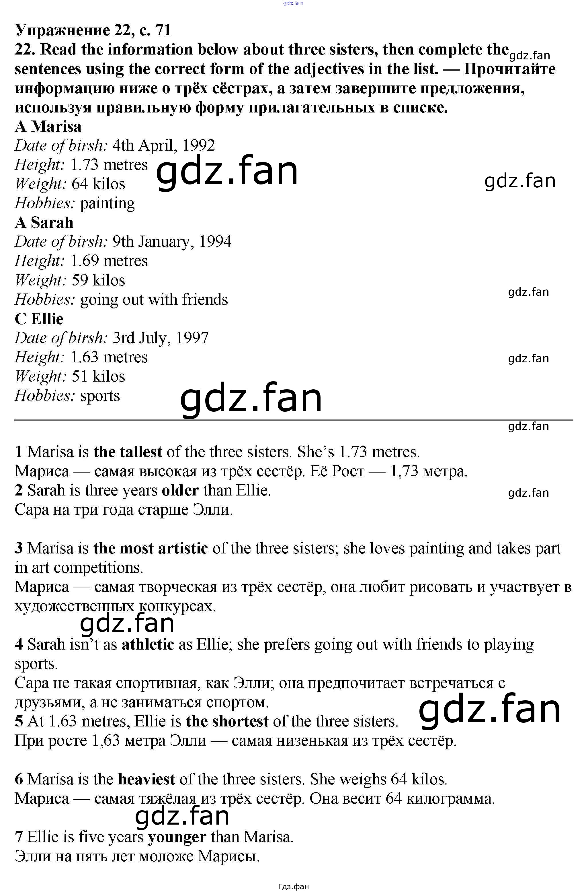 Проверка домашнего задания всегда занимает большое количество времени. На помощь приходит ГДЗ фан по Английскому языку шестого класса. Здесь собраны популярные ответы на 71 (№ 20, 21, 22) Английский язык 6 класс рабочая тетрадь Баранова