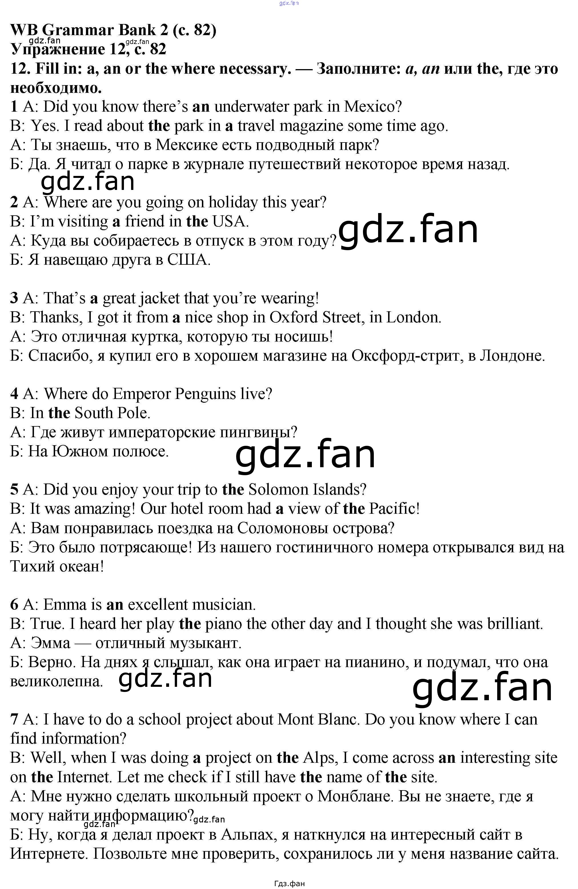 Проверка домашнего задания всегда занимает большое количество времени. На помощь приходит ГДЗ фан по Английскому языку шестого класса. Здесь собраны популярные ответы на 82 (№ 12) Английский язык 6 класс рабочая тетрадь Баранова