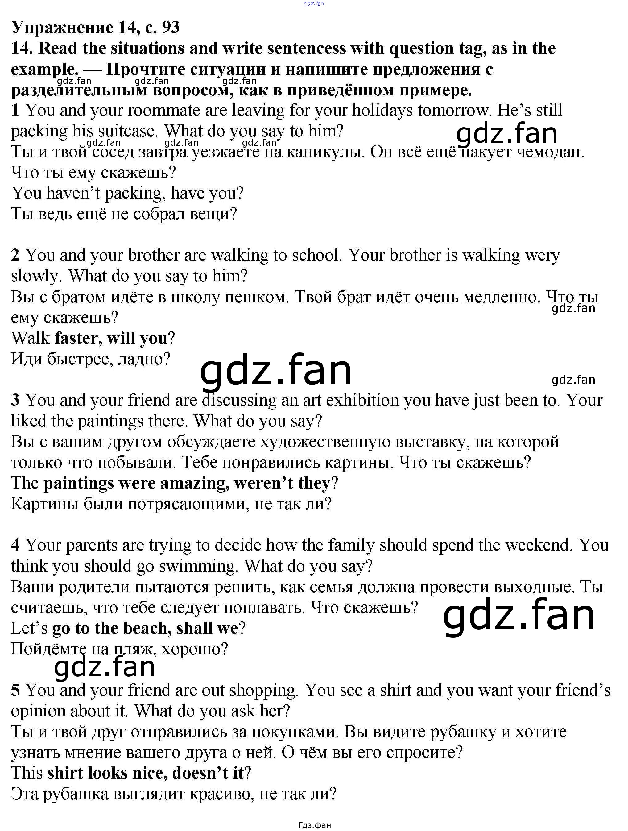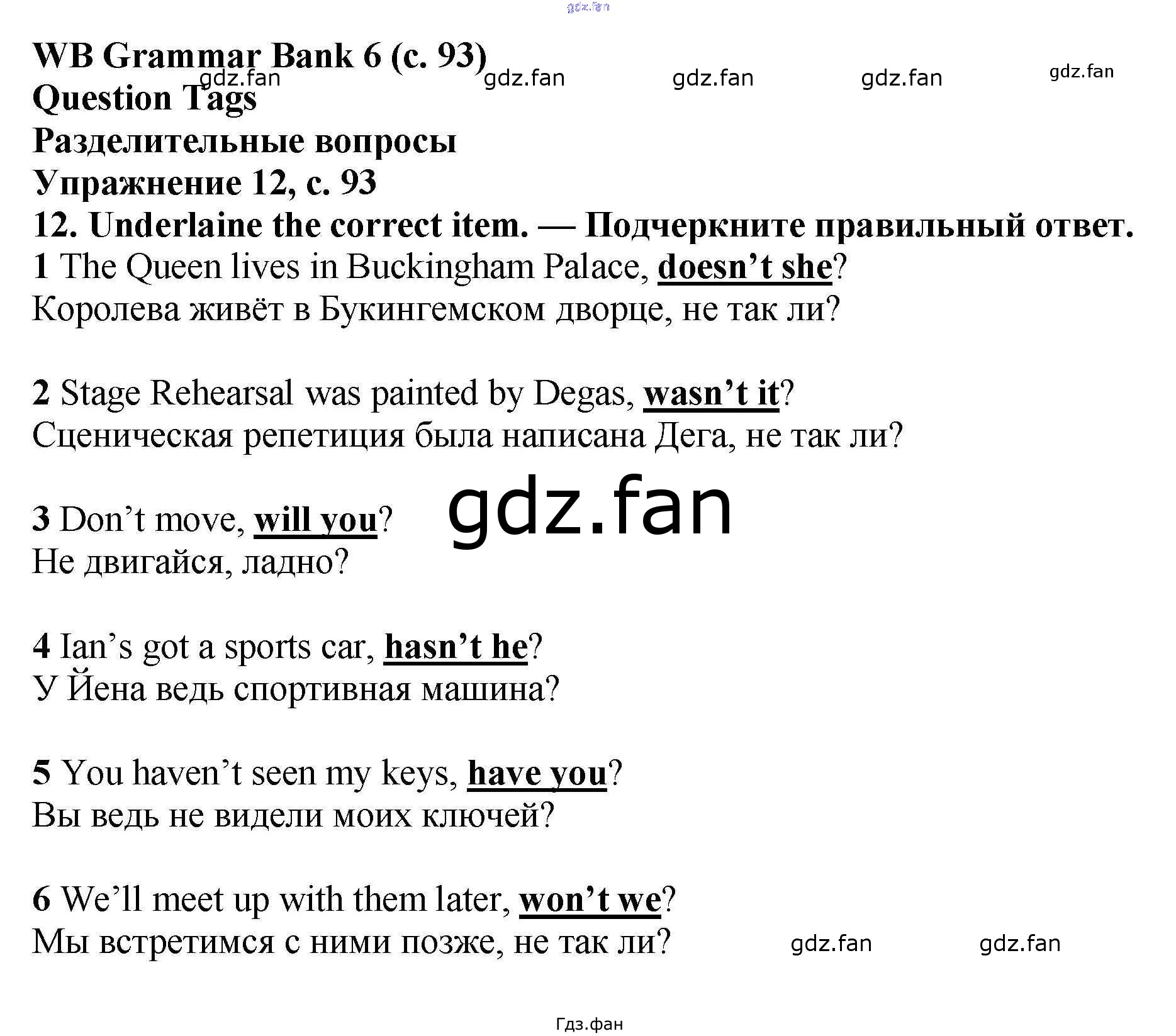 Проверка домашнего задания всегда занимает большое количество времени. На помощь приходит ГДЗ фан по Английскому языку шестого класса. Здесь собраны популярные ответы на 93 (№ 12, 13, 14) Английский язык 6 класс рабочая тетрадь Баранова