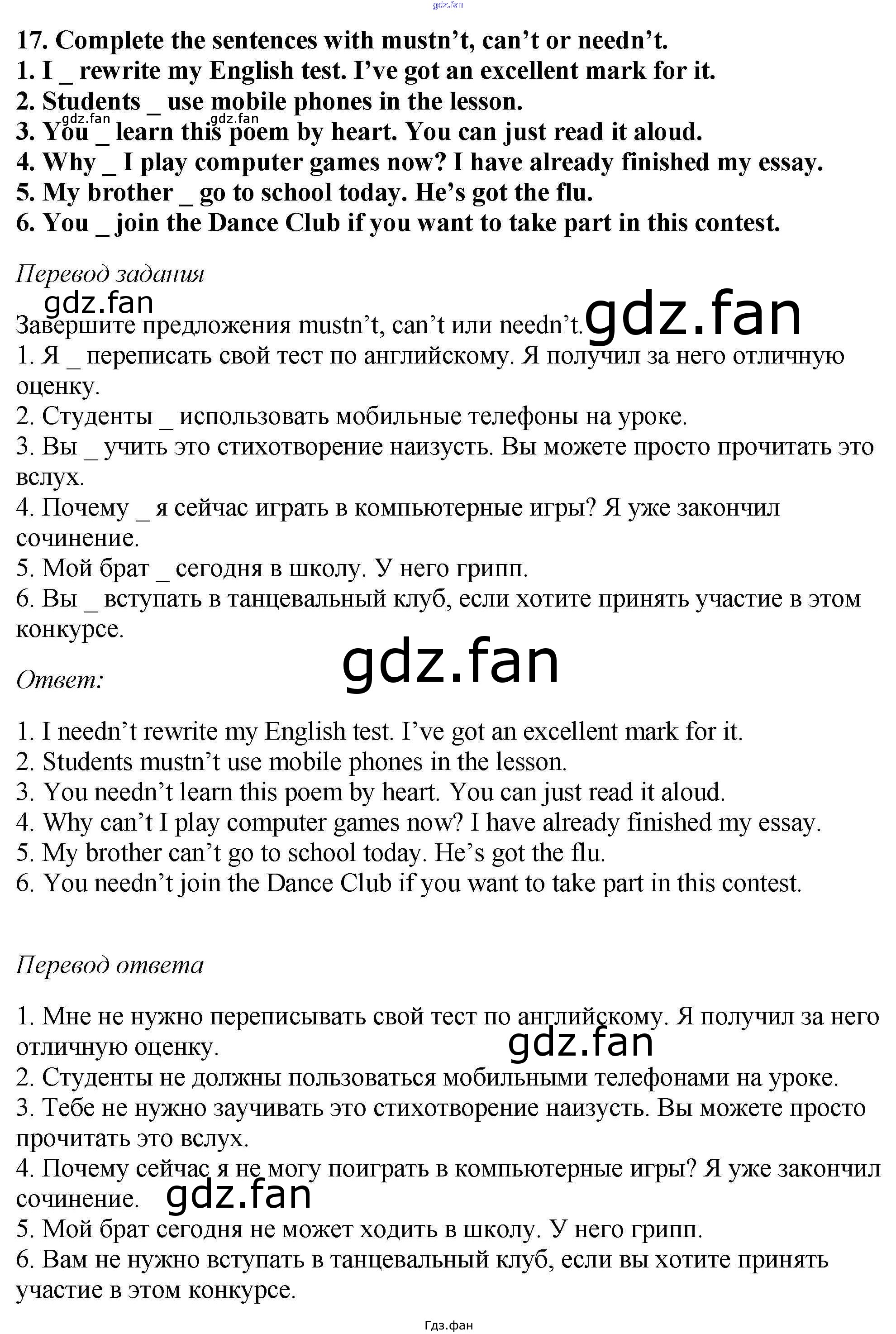 Проверка домашнего задания всегда занимает большое количество времени. На помощь приходит ГДЗ фан по Английскому языку шестого класса. Здесь собраны популярные ответы на 17 (стр. 40) Английский язык 6 класс рабочая тетрадь Enjoy English Биболетова М.З.