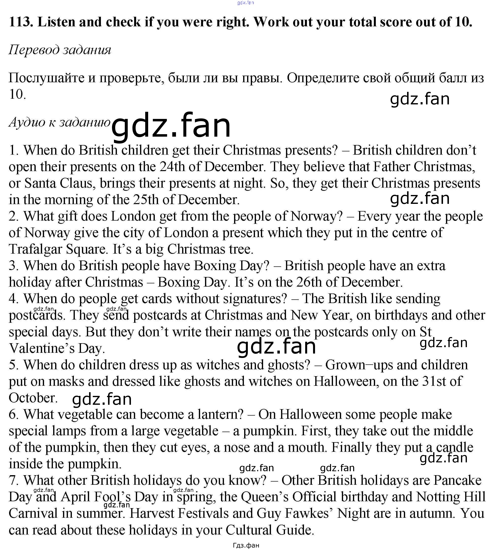 Проверка домашнего задания всегда занимает большое количество времени. На помощь приходит ГДЗ фан по Английскому языку шестого класса. Здесь собраны популярные ответы на 113 (стр. 40) Английский язык 6 класс Enjoy English Биболетова М.З.