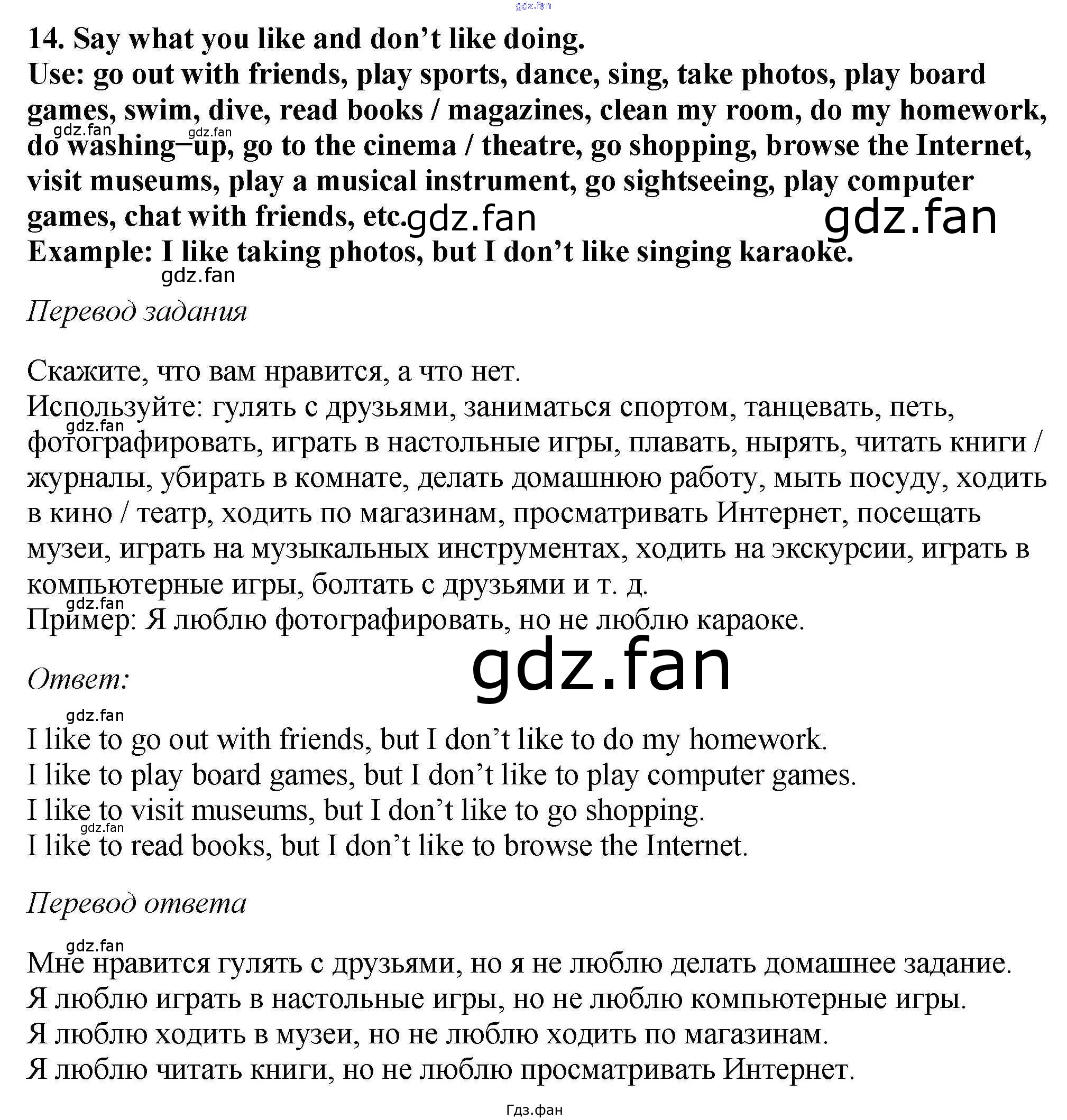 Проверка домашнего задания всегда занимает большое количество времени. На помощь приходит ГДЗ фан по Английскому языку шестого класса. Здесь собраны популярные ответы на 14 (стр. 11) Английский язык 6 класс Enjoy English Биболетова М.З.