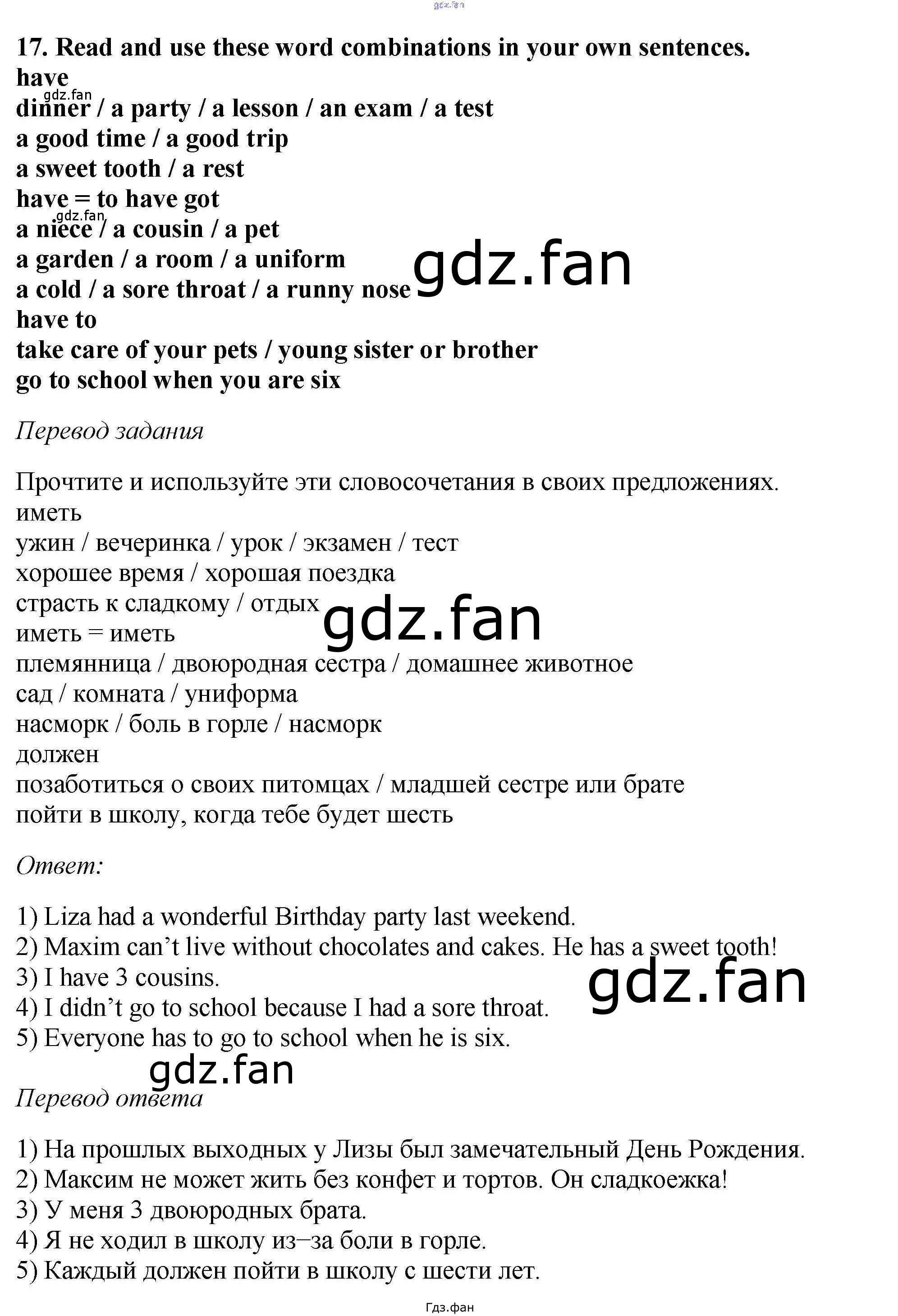 Проверка домашнего задания всегда занимает большое количество времени. На помощь приходит ГДЗ фан по Английскому языку шестого класса. Здесь собраны популярные ответы на 17 (стр. 54) Английский язык 6 класс Enjoy English Биболетова М.З.