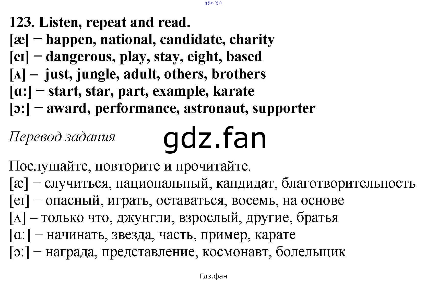 Проверка домашнего задания всегда занимает большое количество времени. На помощь приходит ГДЗ фан по Английскому языку шестого класса. Здесь собраны популярные ответы на 123 (стр. 119) Английский язык 6 класс Enjoy English Биболетова М.З.