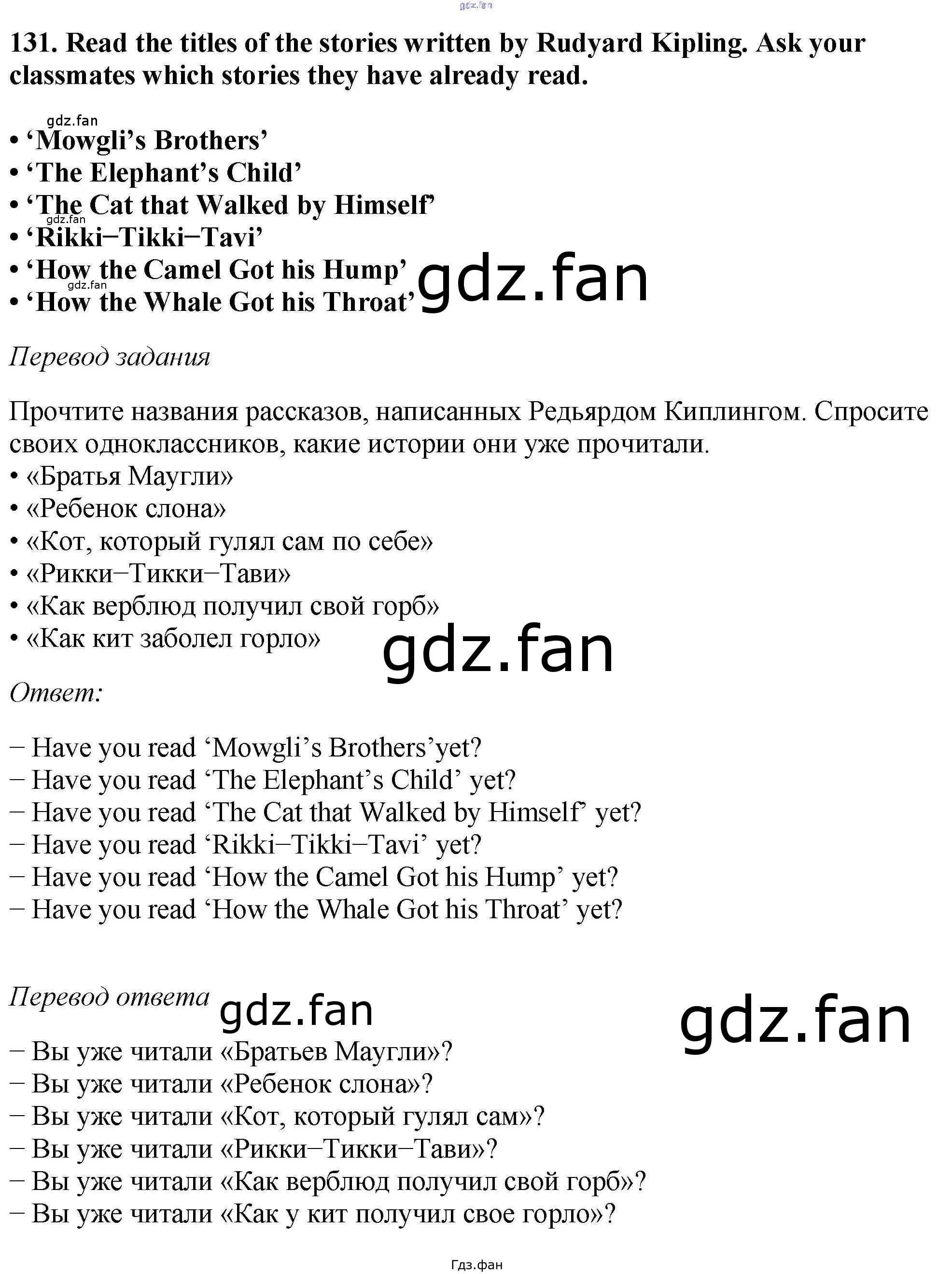 Проверка домашнего задания всегда занимает большое количество времени. На помощь приходит ГДЗ фан по Английскому языку шестого класса. Здесь собраны популярные ответы на 131 (стр. 121) Английский язык 6 класс Enjoy English Биболетова М.З.